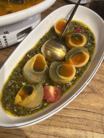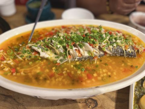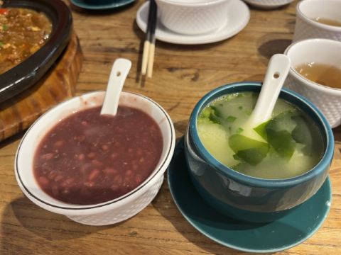 【服务】从排号开始态度就非常好,照顾很周全 旦饕林黑豆腐 豆腐外焦里嫩,口感还不错,整个是酱香味的,但个人吃不惯。 河渡鱼鲈鱼 :鱼肉很鲜嫩,沾一下调料很好吃,不算辣 口烧椒流心皮蛋 :这个好吃的,没有特别的怪味,烧椒很香又不辣,放在溏心里面,好吃 最主要还想说一下 👉🏻白红豆粥,太太太太好吃了,还是免费的,真的好想打包一份带走😂软糯,豆沙又稠,甜度刚刚好,还有丁点陈皮味,直接吃了2碗 整家店菜品都不算辣,口味也不错,还是很推荐的,也很适合外地朋友