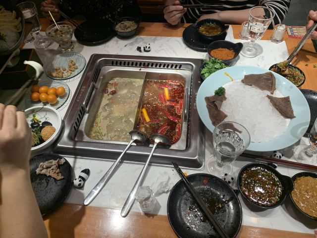 算是成都非常大的火锅店,名气挺大,环境豪华高档,气派的大铜锅,长长的筷子都特有气氛。服务态度好。菜品干净新鲜,但是价格略贵,人气还是依旧火爆。口味相对清淡一些,适合不太能吃辣但是喜欢吃辣的吃货。