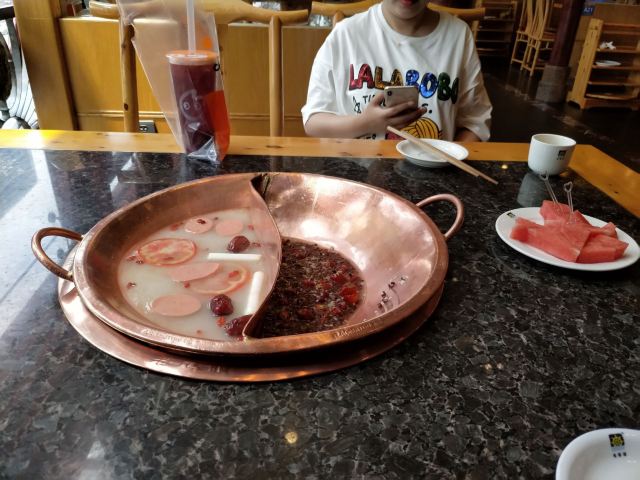 Lao MaTou Hotpot (YuLin)给人一种吃不起的装修感觉。可是一结账,我爱上这个城市了。 第一次来成都,总归要吃点火锅吧? 最近的就是老码头,看看周边还可以,进去了。 一进大门,就被装修的感觉震撼,这尼玛是要出大血的节奏啊 点菜时候,服务小哥先介绍下,看着我们还在挑吃的贴心提醒,一个人三个菜就够了。真不要太贴心 最后一结账,一百多RMB 真的只有一百多 我们下午两点到的,没啥人。服务特棒