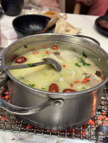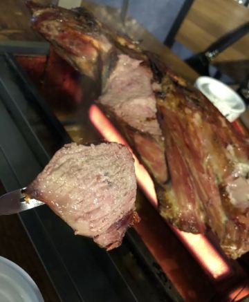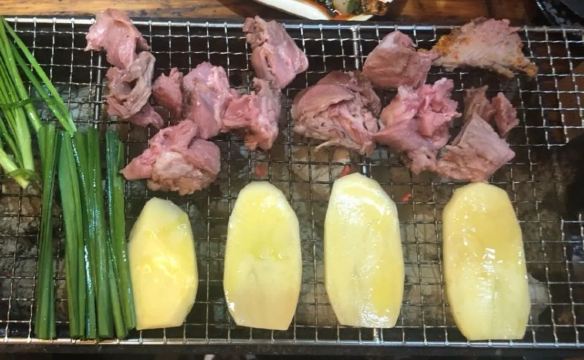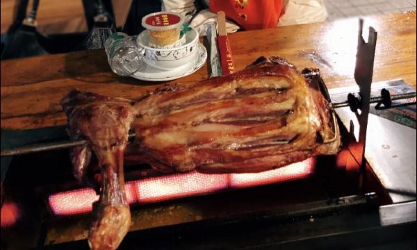 以前这个地方最出名的应该是王大爷烧烤,现在王大爷已经洗碗了,这家孙记羊腿又接棒赶上。这家孙记可能生意太好了,直接写了好几间铺面,起码摆了40-50张桌子,每个桌子上炭火架起烤个羊全腿,场面还是嘿壮观的。羊腿一般要提前点起,否则等的时间有点久。待烤到外酥里嫩,小刀儿切下来,粘点干海椒碟子,吃起还是相当过瘾的。