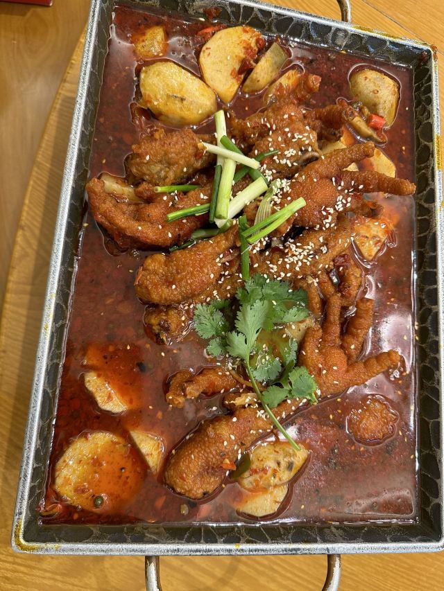 蒜泥白肉,招牌青椒鱼,芋儿耙鸡脚,回锅肉,红糖糍粑,冰粉,石锅生焖虾,老成都鲜锅兔,锅边馍,鸡丝凉面,当家巴骨肉,萝卜大骨汤,辣子鸡,老成都夫妻肺片,豆花,兔头,夫妻肺片