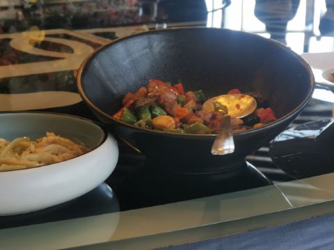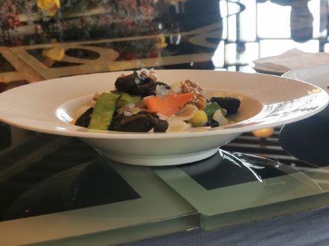 乖乖扁扁好久没来丽轩,好久没吃粤式,还是觉得好吃!头天打电话预约了,中午两个人,安排了一个靠窗的位置。视野开阔,光线好,心情好,感觉吃都能吃多点儿。 可以单点也可以自助,我们还是选择了自助。虽然本来两个小鸟胃,但是不受局限的感觉就是爽! 喜欢的依然是【金汤五谷杂粮煮花胶】这个是一个人限点一份的,非常浓郁,胶原蛋白十足。【玻璃皮润烤乳鸽王】也是限一份,半只,烤得很香,皮脆肉嫩油滋滋。【丽轩虾饺皇】个大饱满虾Q弹。【金丝芥末虾球】大颗大颗的虾仁特满足,芥末酱也调制得恰到好处,咸甜鲜美。 【澳门冰烧三层肉】皮儿好酥脆,五花肉肥而不腻,就是口味上偏咸。【麦香黄金焗海虾】其实也很好吃,因为喜欢咸蛋黄的味道。就是有壳壳剥起来稍微麻烦了些,如果和虾球那个一样只有肉就好了。【黑金流沙包】上次都没有吃,这个只有“黑”没有“金”,不晓得是不是厨师偷懒了。味道也没有想象中那么好,不太浓很流质,离唐宫差一大截。 服务还是可以,上菜也比较快,总体满意。