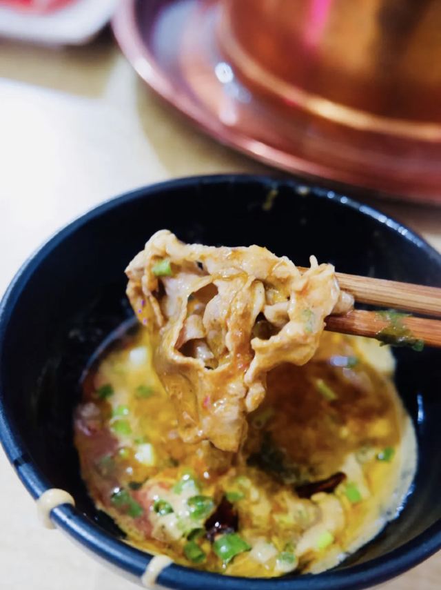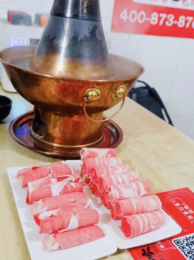每年都会吃一次涮羊肉,每年都是吃嘞寻欢呀!这个涮羊肉自助简直可以! 锅底是农夫山泉清水锅,之前去的是优品道烧的电锅,这里的铜锅居然是烧的炭,更传统了! 三种羊肉敞吃【羊肉卷】【羊高钙肉】【现切背脊肉】,我们最开始就一样点了一盘。羊高钙肉虽然有点小脆骨,但是肉质最嫩气。现切背脊肉比较厚实,口感也不错,但是稍微有点膻味。 其实涮羊肉还是得靠作料,毕竟四川人还是要吃辣才安逸。他家的自助调料台也是很丰富了,我按照自己口味必加的就是辣椒酱,韭菜酱,腐乳,芝麻酱……真的蘸起很巴适。 【豌豆尖】必点素菜啊!来了两份!还有【萝卜】【豆腐】素菜下肚,分量刚好合适。素菜消得比肉快,其实肉这三盘我们两个都有点鼓捣吃的意思了,唉,小鸟胃真不适合吃自助。 他家服务还是不错嘞,店员态度特别好。但是九眼桥这家店环境应该算是寻欢分店中最陈旧的一家了吧。