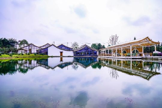 首先,这里的环境非常有特色——建筑依水而建,错落有致。白墙、黑瓦,优雅别致,有着江南独有的灵秀、清新与雅致,充满了东方美的韵味。只可惜少了点园林的点缀,不过鼠尾草田也算弥补了一些遗憾。其中一座建筑还借鉴了福建圆寨土楼的设计,巧妙地将其融合到了园区的建筑中,也让人蛮惊喜的。 餐品也有很多亮点,能看出厨师的功力和努力。我个人最喜欢的是【羊肉汤】,临近冬至的羊肉汤也是很应景了。而且不二山房的位置与简阳也比较近,这羊肉汤很靠谱也是有原因的。而且羊肉汤中最后煮上清新的豌豆颠儿和白菜,简直就是在冬日里熨烫五脏六腑的不二选择!另外,【陈年花雕醉大闸蟹】、【酱香干烧关东参】、【传统牛肉焦饼】也都很有特色,得到了大家的一致好评! 小伙伴们,来年再见吧!