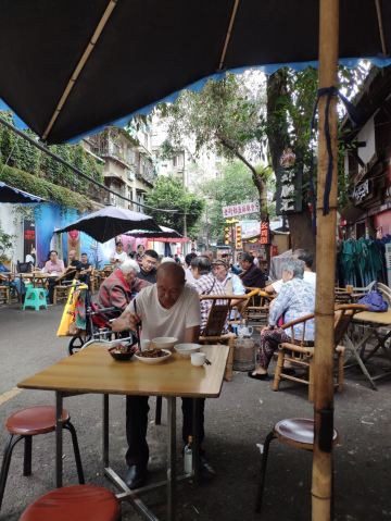成都朋友带我来到了这条老街里的老店。巷子不大但是比较热闹,有吃饭的吃面吃冰粉的,一家馆子连着一家馆子,在这种氛围里吃饭还真是别有风味,突出了成都这个休闲城市的特点!
