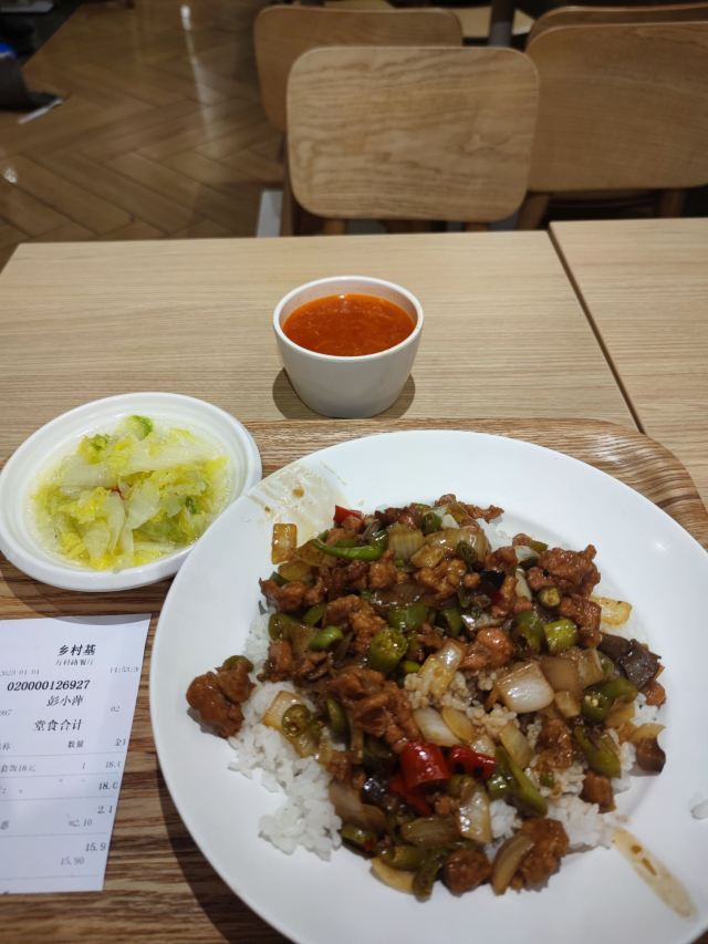 偶尔不知道吃什么的时候就会去乡村基简单解决一下吃饭的问题。原意是去另一家乡村基吃饭,不知道为什么那家关门了,附近就这家很近。走过来才发现这家乡村基不知道什么时候改头换面过,漂亮有气质很多,服务员态度也比以前好太多。盖饭还是好吃的,以后可以时常来。