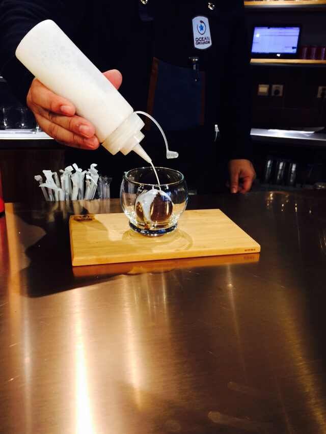 Kanakana,这是奈良特别有名气的咖啡厅,来这边的游客特别的多,也算是人气的咖啡厅了,我们点了最有特色的咖啡,里面是冰咖啡球加上热牛奶。