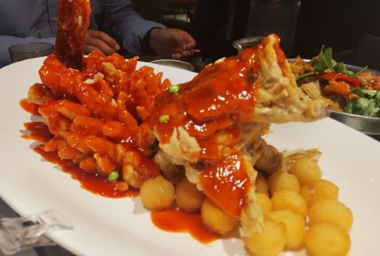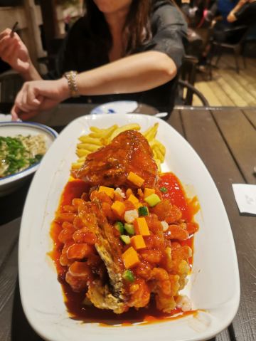 不得不说,现在的吴越荣记装修越来越有特点,很苏式,很雅致。 有套餐可以点,不会点菜的可以忙点。 松鼠桂鱼是永远的神,酸酸的很开胃,鱼肉很嫩,超爱。 响油鳝糊,巨好吃😋,炸猪排也很嫩。 五个人吃,又加了三道蔬菜,真的都很好吃。 大麻球很有趣,是甜口的,有着团团圆圆的好寓意。