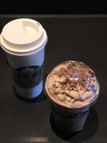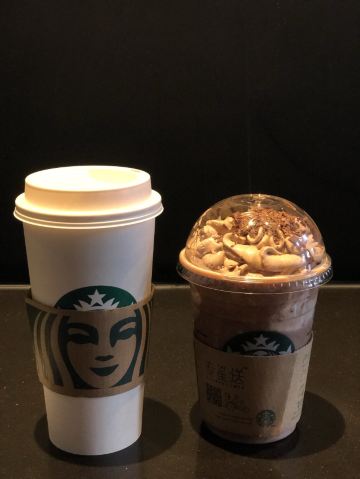 周末和老公来逛奕欧来,路过星巴克,那么热的天气,果断喝一杯~ 买一送一的券用起来,点了新出的星冰乐,送了燕麦拿铁。 排队点单蛮久的,毕竟这家星巴克人超多的。 但是拿到成品还是很快的说,比预计时间快多了。 比利时黑巧慕斯星冰乐 老公说太甜了,有点冰渣,估计是做得匆忙了点。 燕麦拿铁 无糖的,比较健康,好久不喝咖啡,觉得好幸福。