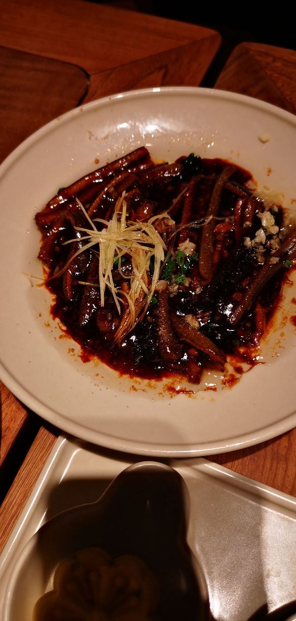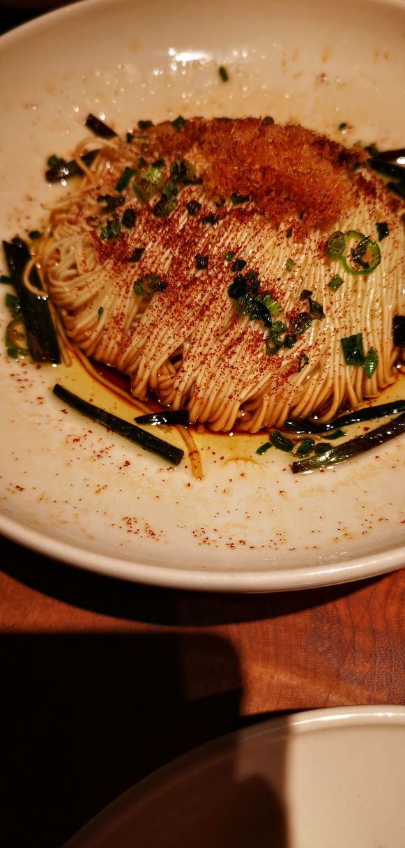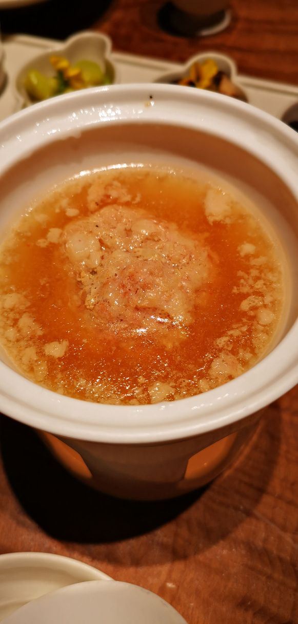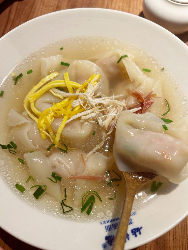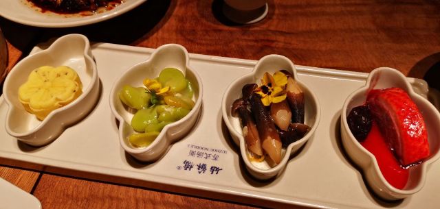 无意中在网上刷到这家面馆,看着挺有眼缘的,就来打卡了。 首先,表扬下服务,服务员看到我们包包比较多,立刻拿了个凳子给我们。一入座,就有茶水和水果,非常贴心。 我们团了套餐,性价比挺高的,颜值也高。 匠心猪肝 上面铺的姜丝吃不惯,猪肝还是挺好吃的。 桂花凉糕 挺糯的,淡淡的桂花味,不甜腻,适合夏天吃。 枫镇大肉面 肉又酥又香,肥的部位入口即化。 三虾面 服务员先问我们要不要拍照,等我们拍完,才给我们拌面。三虾面还是不错的,还配了四个小菜,和排骨香菇汤! 用餐环境也不错。虽然他家排队厉害,但是排队速度挺快的,我们排的时候前面有40桌,30分钟不到就排到了!