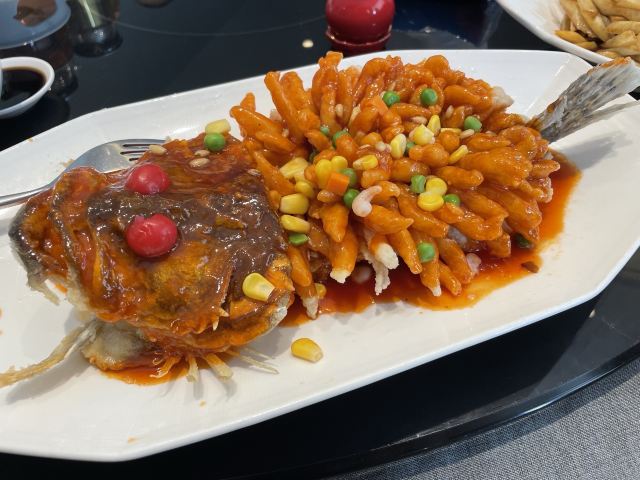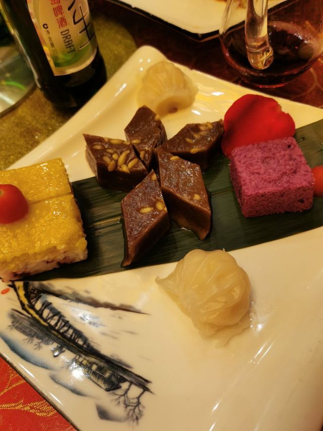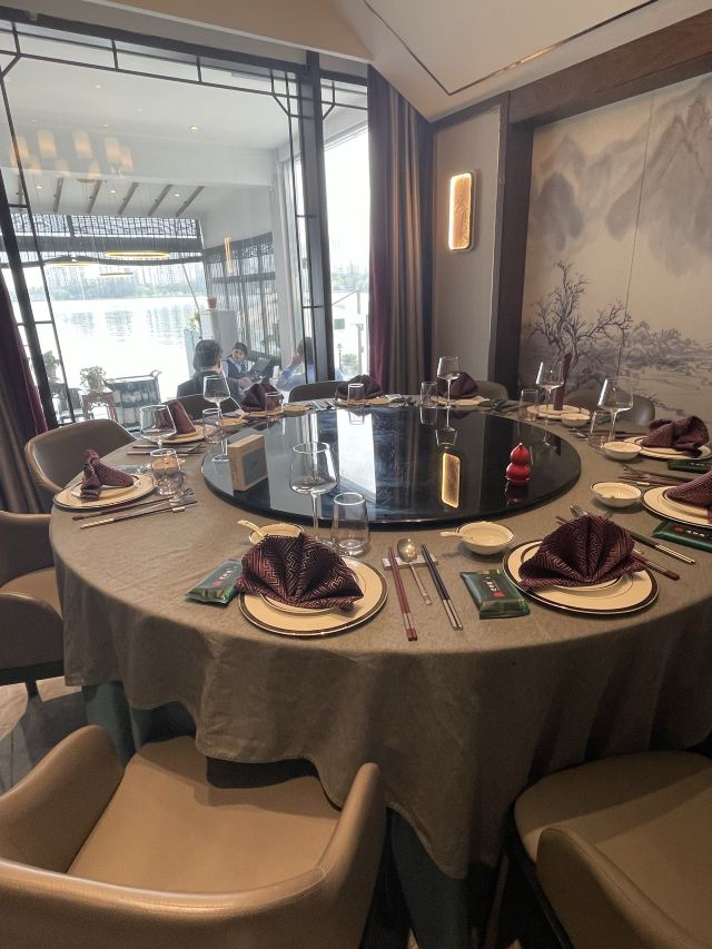 LINGXUANGE凌轩阁·湖景苏帮菜(李公堤店) 味道总体一般,个别菜挺差的,所谓湖景包房(见图二)是看服务员还是看湖景?离湖景还是有点距离的。 冷菜上上,热菜上上,再冷菜上上,一股脑儿上来,桌上都摆不下了,这个上菜速度……杯子盘子有的是脏的….. 先说觉得差的菜: 江雪小排 冷菜小排干硬也就算了,竟然还是冰冷的,难吃 熏鱼 菜名是苏式玫瑰熏鱼,玫瑰在哪里没看到,一吃就是重新加热的熏鱼 素烧鹅 里面吃起来粗粗的,冰冷的 太湖醉虾 完全不入味 松鼠桂鱼 酸味重了点,粉有点厚 茭白 吃口老 鸡头米河虾仁 苏式响油鳝糊 这两个相对好点。 最后店家送了自制青团,加一星半 自己选的店,克制不发火。李公堤那么多店为什么选这家,失策失策。景不行,服务不行,菜品也不行。