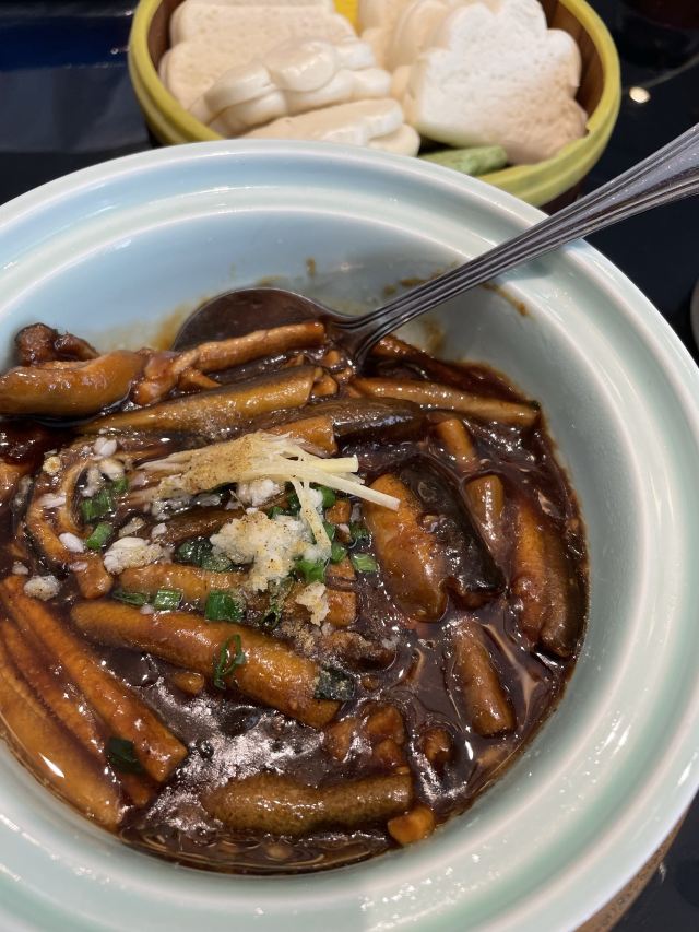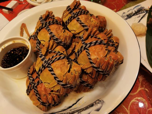 Yannis_Yip[薄荷]环境: 李公堤上都是高档餐厅,沿湖而建的苏式建筑,一边品尝苏州美食,一边观看金鸡湖的夜景,岸边杨柳依依,夜空繁星点点… 室内装修大气,宴请宾客不过的选择,建议提前预定,当天可能预约不上。 [服务铃]服务: 苏杭地区的服务大多较有性格,一身傲气,服务跟不上,基础的换碟工作也都没到位,其他就更不用说。 「茨菰炒肉片」第一次发现茨菰可以做得这么好吃,像薯片,酥脆可口。 「龙井虾仁」一如既往的咸鲜,却从未尝到过茶香,我不懂[憨笑] 「酱汁鲍鱼草捆肉」衬热吃,凉了的瘦肉会变硬,影响口感,肥瘦一起吃,肥而不腻,猪皮Q弹[调皮] 「六月黄」还是喜欢入秋的大闸蟹,六月黄没有让我满载而归,有机会一定要秋天来,吃上我心心念黄油蟹[调皮]