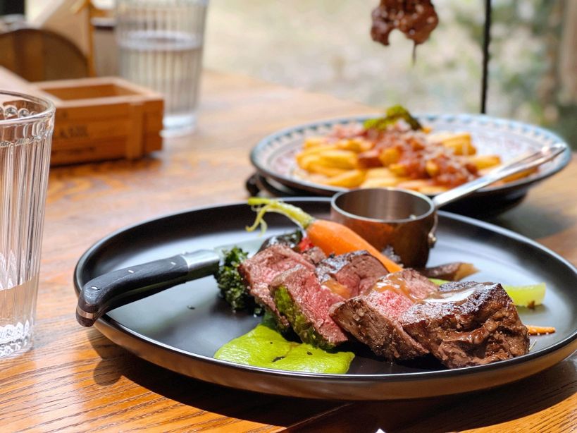 提拉米苏,法式香草焗蜗牛,黑松露芝士薯条,巴斯克乳酪蛋糕,精选丹弗牛排,香煎蘑菇配火腿,柠香黄油黑虎虾,黑松露鹅肝牛肉薄饼,花汐鲜果茶,美国极佳安格斯厚切牛板腱