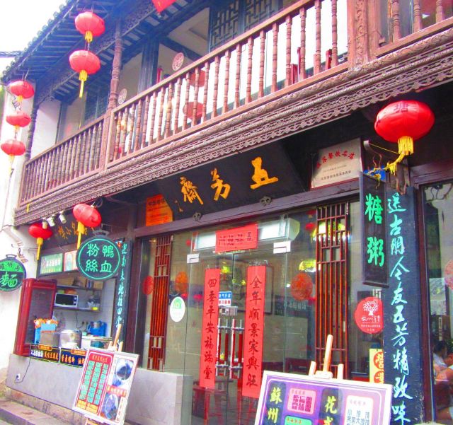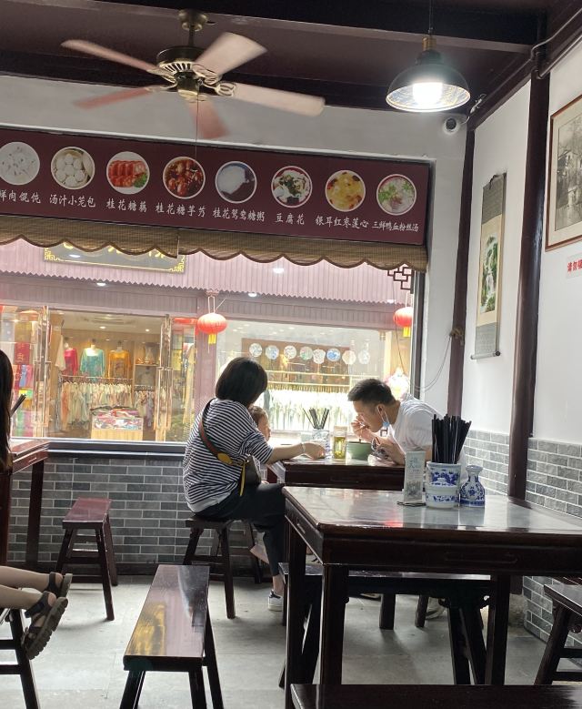 Seven-mile-long Shantang位于山塘街入口附近,餐厅名字为七里山塘。 有各种浇头的苏式面、馄饨;有各种苏式小吃,桂花糖藕、糖粥、酒酿圆子、银耳莲子红枣糖水,价格适中,就餐环境很苏式风格。