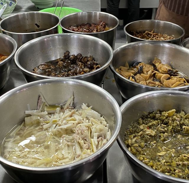 豆腐花,小馄饨,爆鱼面,桂花鸳鸯糖粥,酒酿圆子,焖肉面,鸡爪,糖芋头,糖耦,肉粽,汤汁小笼包,糖粥,茶叶蛋,大排面