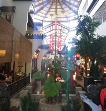 这家是开的最早的江南大院,环境挺好的,也很大,亭台楼阁,小桥流水,乌篷船,还有戏台唱昆曲,苏帮菜味道做的不错,人均100元。
