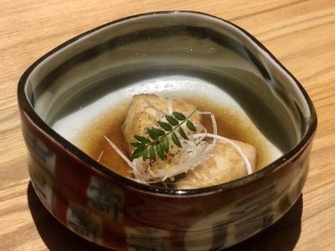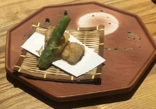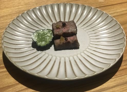 Ruby.Jin去苏州出差,住在附近,打电话预约了包房,包房只能坐10个人,我们正好10个,也是缘分。包房需要付定金。 他们家可以单点也可以点套餐,看上去套餐确实比较划算,不过我老板说,套餐的量和单点是不一样的,究竟差了多少我不知道,但据说150元3块的炭烤和牛肉丁,套餐里的量和单点是一样的。最终我们决定点套餐,因为要提前点,点套餐比较方便,而且套餐内容看上去也不错。 不知道传说中的怀石料理什么样,但是感觉这个套餐已经非常精致。 前菜和生鱼片上得很快,吃完一瞬间觉得好饱,结果后来的菜几乎都是10来分钟才上一个,所以从头吃到尾之后,竟然觉得正正好。 前菜有金枪鱼泥、鳕鱼的白子、黑金鲍。鳕鱼的白子是什么呢?自己去查吧!服务员说,告诉你可能就没胃口吃了。结果还是小声地告诉了我。然后,我还是吃了。味道真的是非常不错啊!口感是爽滑的,味道是鲜美的,没有任何奇怪的气味和口味,只觉得,嗯,我可以再来一份。 之后就是刺身五品了,不懂的人,最好是等服务员介绍之后再吃,她会告诉你从哪一块开始吃,省得第一口就很肥腻。 接下去就是热食了,蒸蛋也是比较特别的那种,材料丰富,上面会有天妇罗,里面还有蟹肉。每道菜都很精致,小小口的,摆放讲究。最期待的就是和牛了,没想到上桌之后原来每人只有那么三块,三口就没了。简直就像猪八戒吃人参果的感觉。寿司的话,当然也是很棒的,在套餐里应该也是不可或缺的,但是我这种到日料店里吃惯了刺身,一般不点寿司的人,真的还是超希望多来几品刺身的。总之,可能因为每样的量都小,所以都很不过瘾的感觉。最后我们只能狂喝酒了,最喜欢一开始那瓶北海道蜜瓜什么梅酒,倒在冰球杯里,我喜欢冰球没有融化的时候喝,味道比较浓郁,是甜甜的那种,没有什么酒味,特别适合女孩子喝。后来又点了三粒米和白州。最终也算是酒足饭饱吧! 所以,这顿饭,各方面都很棒,也足以刷新我至今对日料的认知,就是太精致,以至于很不过瘾。