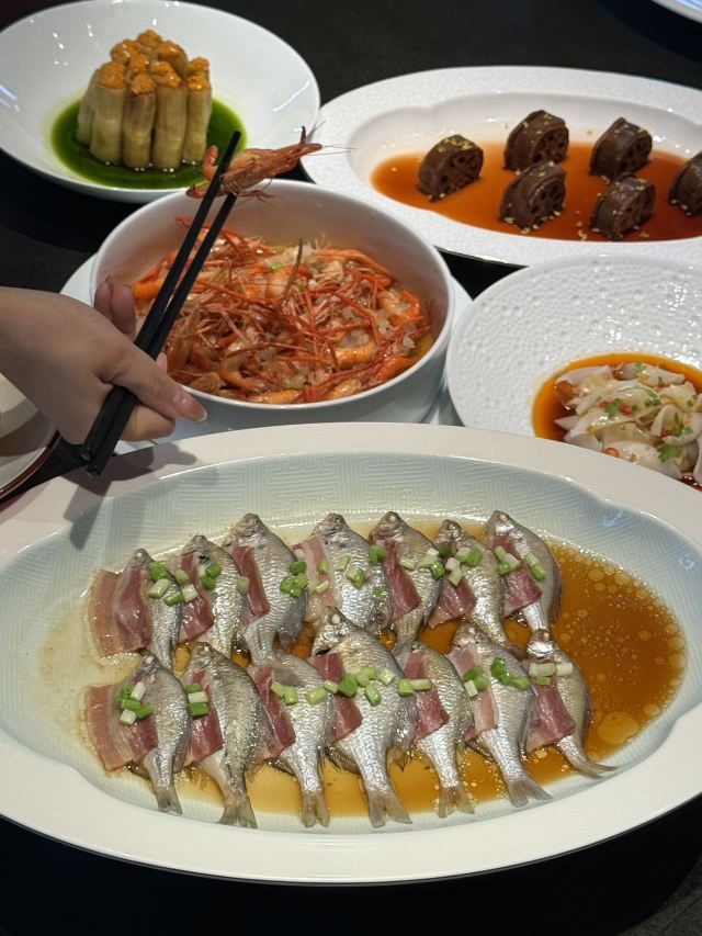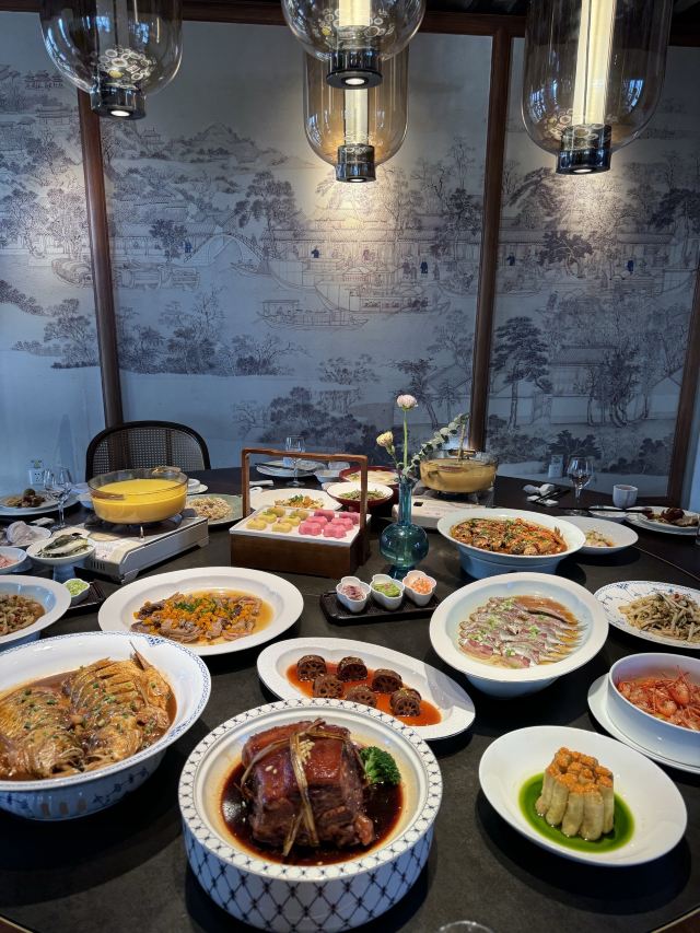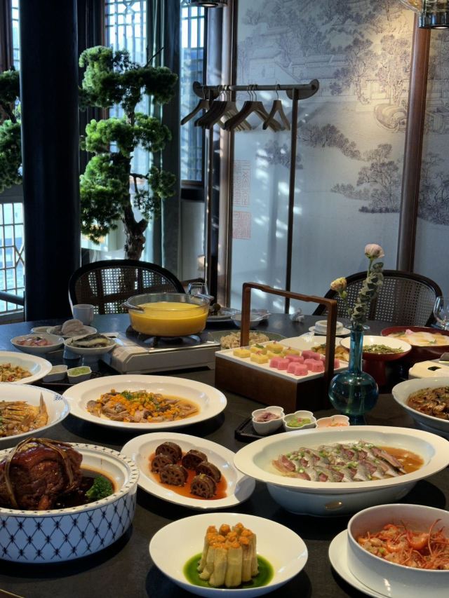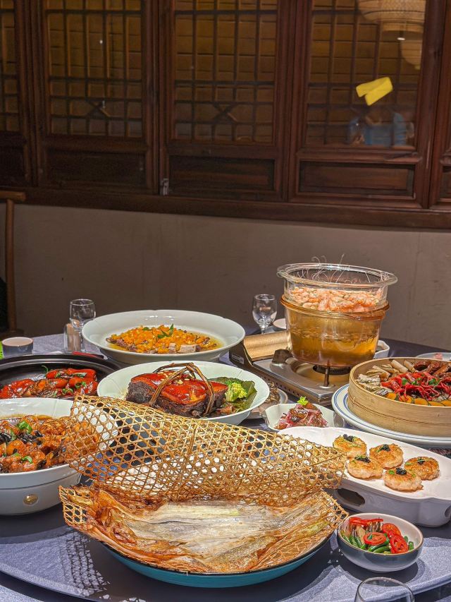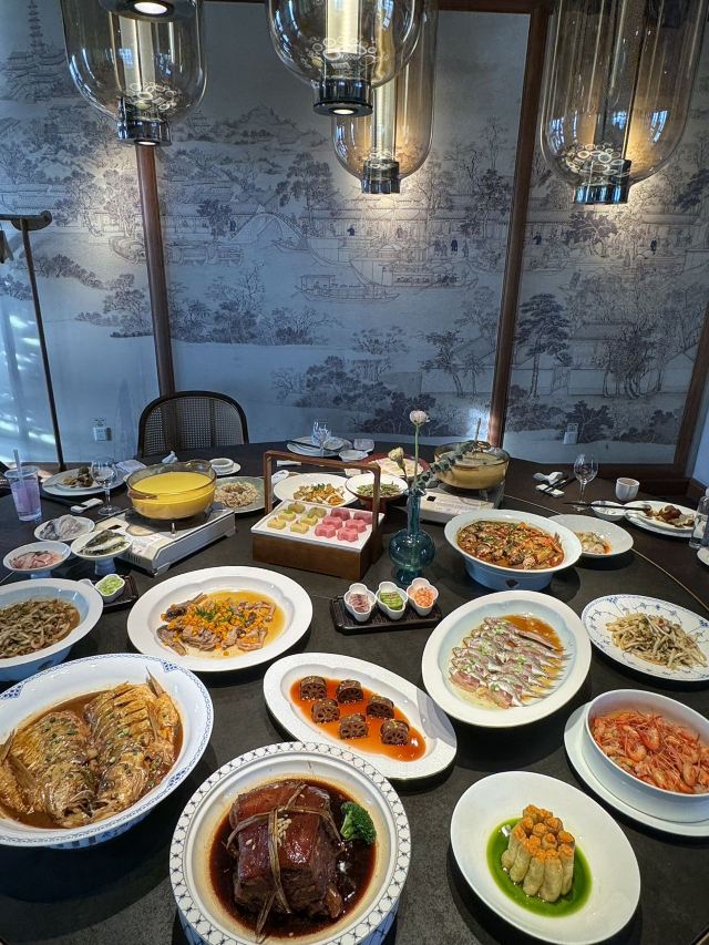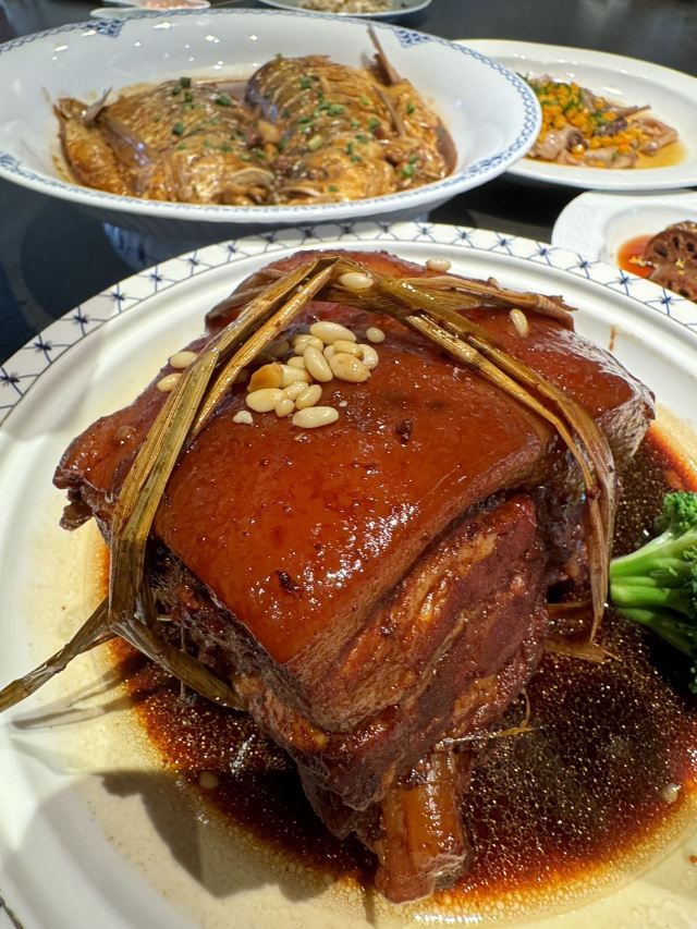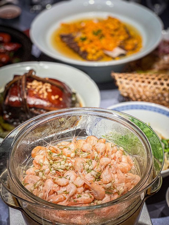 珍珠奶茶有点咸朋友来苏旅游🍃带着他们逛了木渎古镇,爬了灵岩山…还想着吃一顿地道的太湖船菜,想到之前家里人一直夸的一家店,正好前来试试👏 一楼明档厨房,丰富的菜品,直接自己选择,现点现做😊 ✅一笼蒸鲜 热气腾腾的蒸笼端上桌就散发着香气,鸭舌、南瓜、咸鱼、鸡…同时吃到四种口味,四种菜,别提多满足了😆 ✅甫里扎肉 这块肉真的很扎实,得有两斤重吧🥹肥瘦适中,入口软软糯糯的,真的很香‼️ ✅茉莉花蒸河虾 不同于以往烹饪的河虾🦐 蒸河虾真的挺新鲜的 用茉莉花来蒸,满满的茉莉香气 虾肉鲜嫩,蘸了酱汁更鲜美😋 吃完饭,走走旁边的网红胥虹桥,吹吹风,消消食,晚上的景色别说还挺美💕