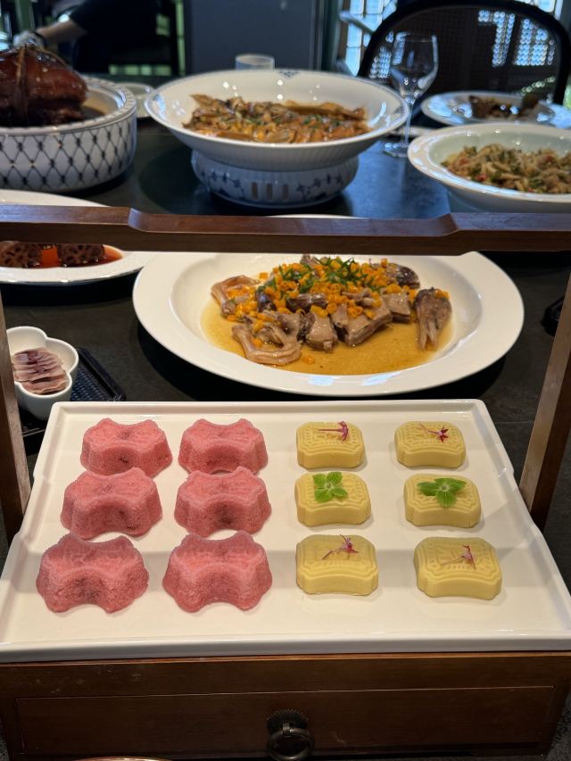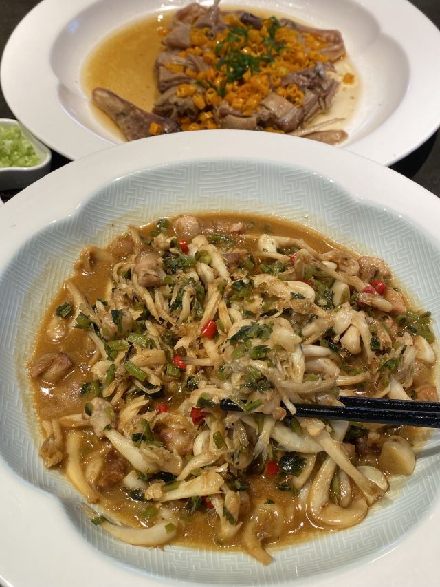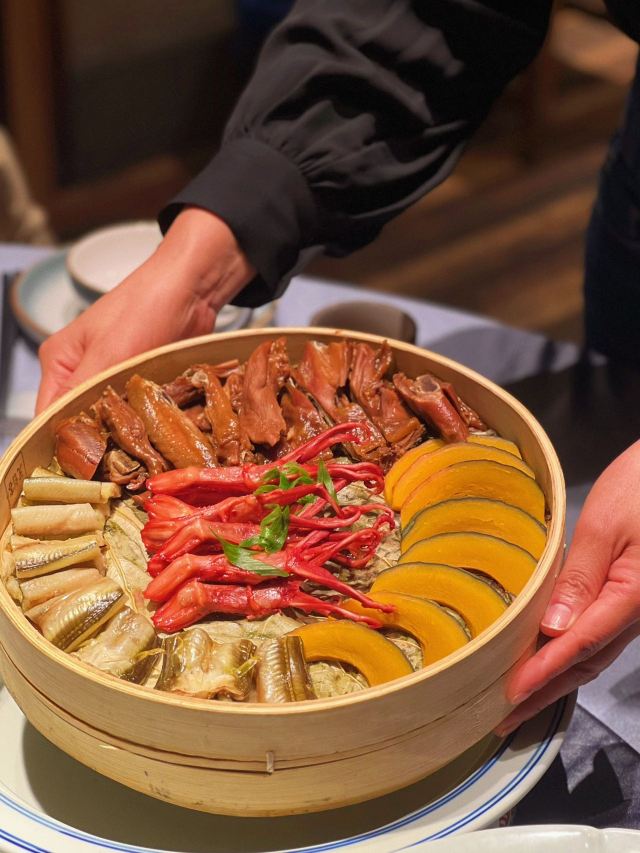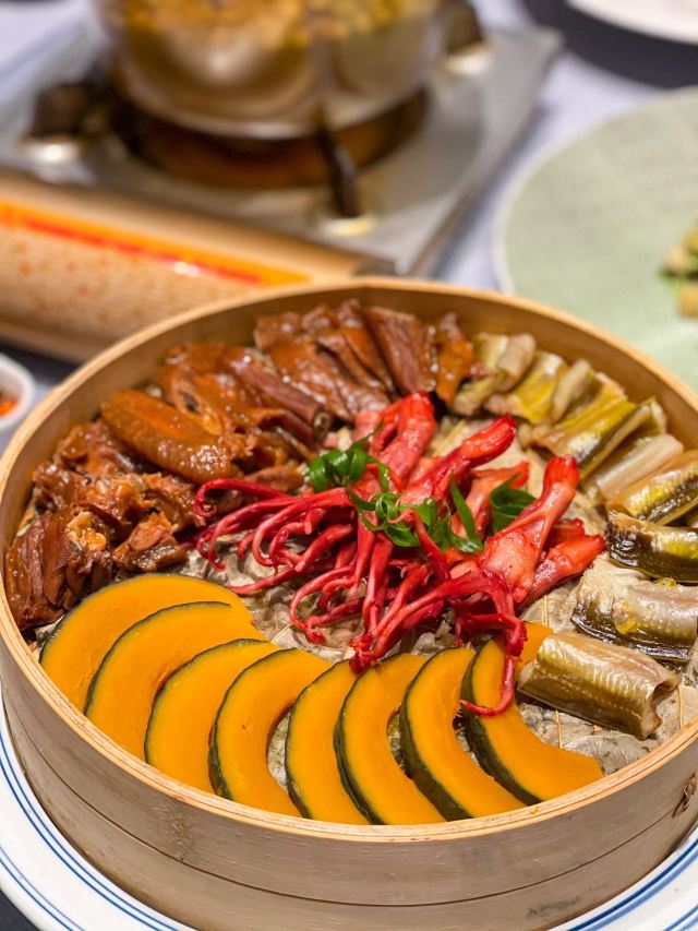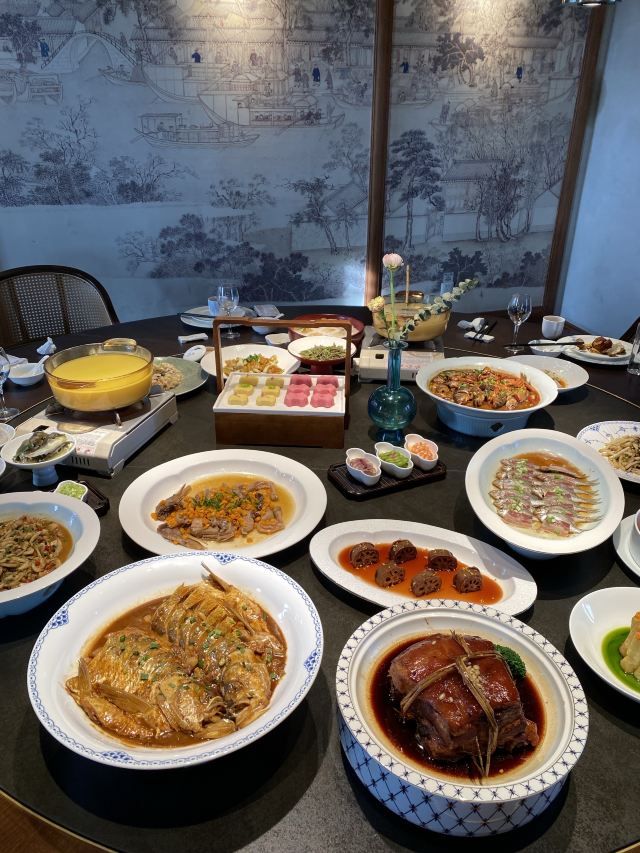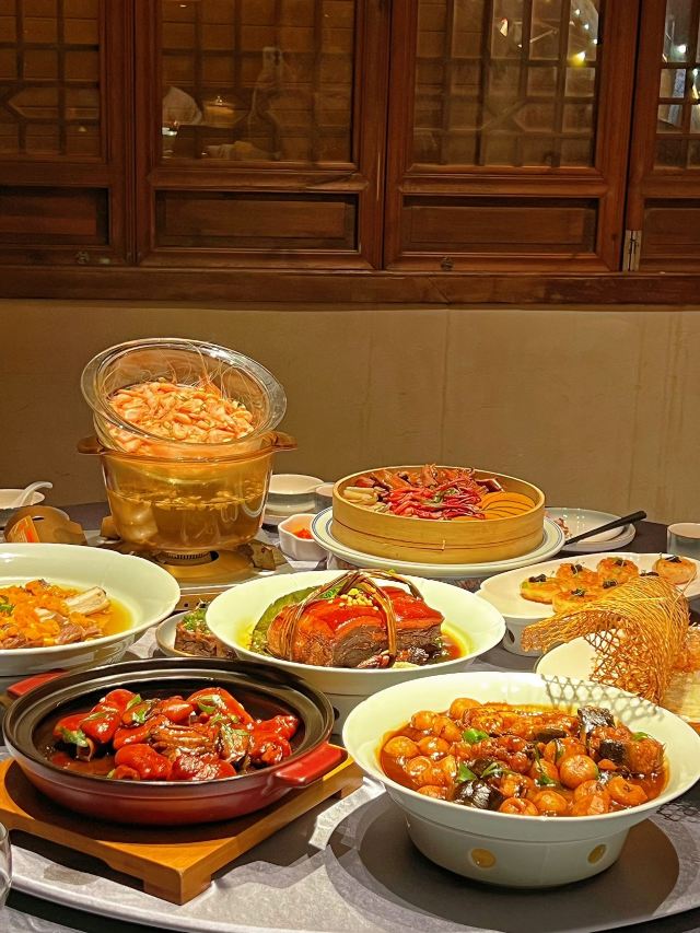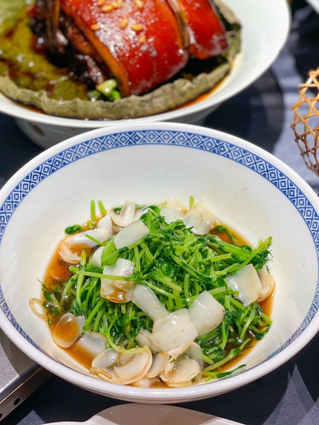 珍珠奶茶有点咸朋友来苏旅游🍃带着他们逛了木渎古镇,爬了灵岩山…还想着吃一顿地道的太湖船菜,想到之前家里人一直夸的一家店,正好前来试试👏 一楼明档厨房,丰富的菜品,直接自己选择,现点现做😊 ✅一笼蒸鲜 热气腾腾的蒸笼端上桌就散发着香气,鸭舌、南瓜、咸鱼、鸡…同时吃到四种口味,四种菜,别提多满足了😆 ✅甫里扎肉 这块肉真的很扎实,得有两斤重吧🥹肥瘦适中,入口软软糯糯的,真的很香‼️ ✅茉莉花蒸河虾 不同于以往烹饪的河虾🦐 蒸河虾真的挺新鲜的 用茉莉花来蒸,满满的茉莉香气 虾肉鲜嫩,蘸了酱汁更鲜美😋 吃完饭,走走旁边的网红胥虹桥,吹吹风,消消食,晚上的景色别说还挺美💕