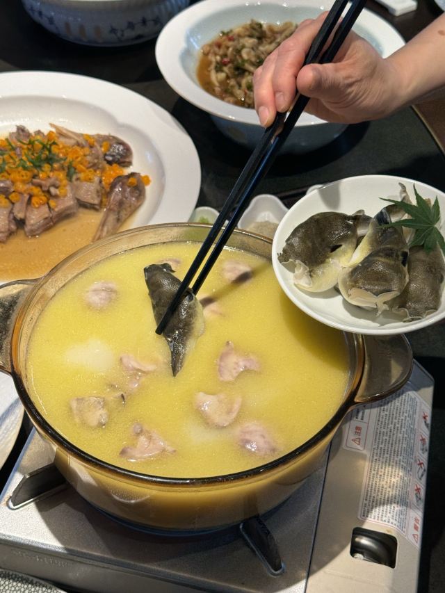 我腦海中的橡皮擦太湖船菜|苏州胥口店吃的是美食看的是美景 夕阳无限好只是近黄昏,白天的胥虹桥和晚上的🌃不一样的美… 来这边暖阳秋冬游的时候,看着漂亮的景,吃着正宗太湖船菜!二十八里!看到网上介绍了这么多,我打算自己亲身感受下! 一堆人定了个包厢,这边服务贼拉好,不仅有戏曲可以听👂还有舞蹈💃表演!太有意思啦! 而且,这边还有专门的生日🎂特别唱歌🎤服务 竹网生态桂鱼🐠 不得不说这个,这个烹饪手法相当的ok 这个蒜🧄香味儿…直接蒸出来的鱼味美香甜 而且鱼肉鲜嫩,不得不说一定要点这道菜! 藏书羊肉打边炉🍲 这是羊肉版本的升级2.0的系列! 火热的🔥的羊肉汤,羊肉+羊血。直接配着葱、剁椒酱、秘制酱油专门调味! 冬天的季节来点羊肉贼暖和! 猪手🐷烧鲍鱼 红滋滋的猪手软烂脱骨一抿之后直接脱骨 而且还搭配着蛋白质高质量的鲍鱼! 我觉得这道菜直接搭配一碗白米饭真的Cp感满满 独头蒜红烧河鳗🐊 再来跟大家特别安利他们家的大颗的蒜头烧鳗鱼 鳗鱼肥润滋补,蒜头也是冬季佳品! 当然啦蛋白质是我们人体必需品! 白天逛逛木渎古镇,晚上来这边看看胥虹桥的美景!尝尝太湖🚢船菜真心惬意呀! 🏠:二十八里太湖船菜(吉祥路店) 📍:吉祥路胥江运河南侧胥虹舫木船(胥虹桥旁