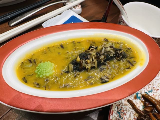 环境不错,菜品创意很多,苏帮菜底子基础上的融合菜,较有特色。服务员态度很好,器皿精细。