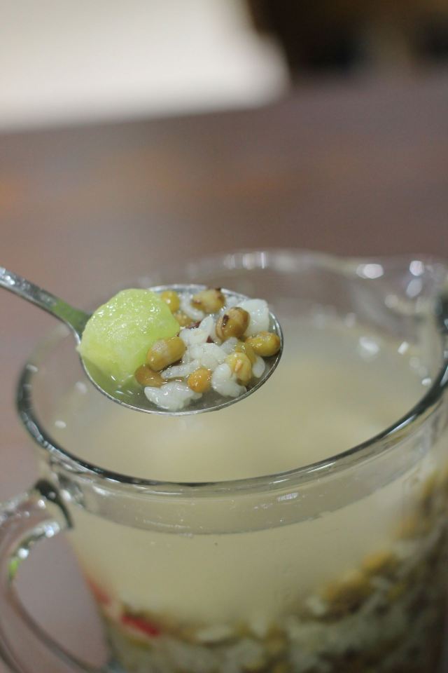绿豆阿婆绿豆汤(十全街店)走一个~ 苏式绿豆汤是主打产品,点了苏式绿豆汤+红桂花酒酿绿豆汤+鸡爪~绿豆汤里的薄荷水水是可以免费续的,味道还可以。