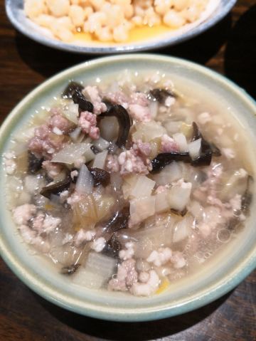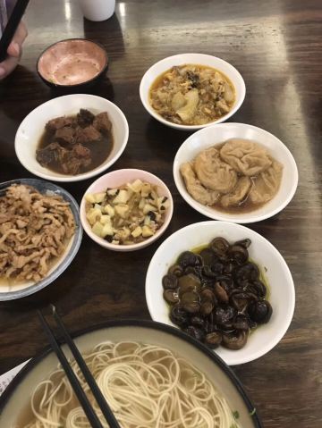 在十全街找吃的,绝对会选择困难症啊,好吃的实在太多了! 还好心中目标明确,要吃一碗面! 同得兴以前吃过,那就换一家。 万泰兴也是老字号,何况苏州哪儿哪儿的面条都好吃。 用手机扫码点单,两个人点了不少浇头,满足。 就是不大明白的是,为什么三月就有三虾面,这不应该是六月初才有的吗?