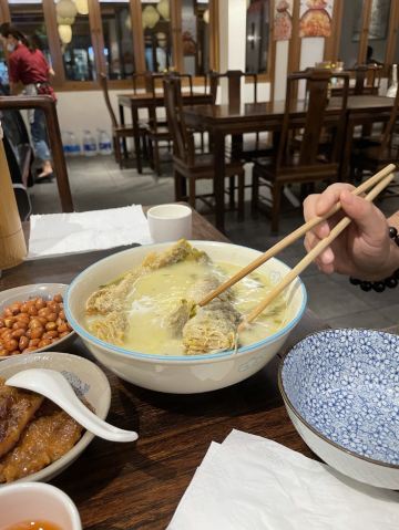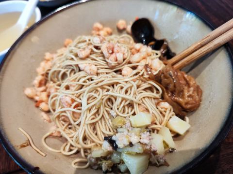 面馆位于十全路,走精品苏式面路线。拌面不咸,入口有鲜味。红汤面是传统,一定要来一份。虾仁都是河虾剥壳,沾醋鲜美。枫泾大肉,肥瘦结合,色味诱人。猪肝切薄片,酱爆味足。一楼方桌,人多需要拼桌。二楼是红木圆桌和绣登,要人均88才可上楼。