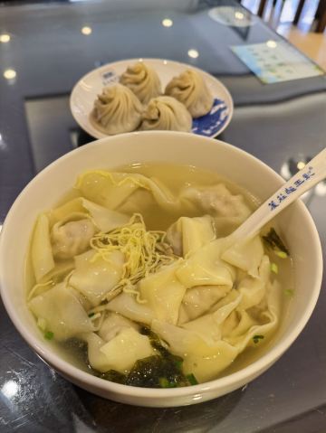 从定慧寺出来,正在想吃什么,就看到这家芦庄超王记,环境大气,吃无锡小笼馄饨,在苏州吃个无锡味道,也不错呀! 一碗开洋馄饨配无锡小笼,正合适! 开洋馄饨是白汤底的很鲜美,馄饨个大肉馅多,很扎实的口感,无锡小笼甜口肉多,真的是很好吃!