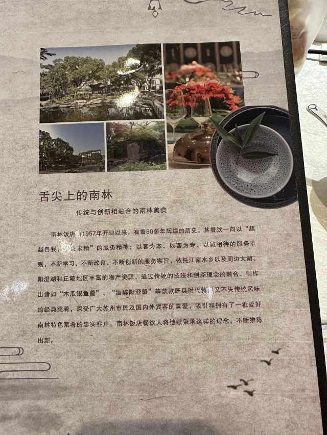 苏州金陵南林饭店,位于十全街滚锈坊,饭店环境优雅,是苏州园林建筑风格,宾馆小桥流水,楼台亭格,是休闲的好地方,十全街夜景迷人,有各种各样的店铺,特别是各家玉器店很有特色,还有各种饮料店、苏锈丝绸店,琳琅满目,是#值得一去的地方 。