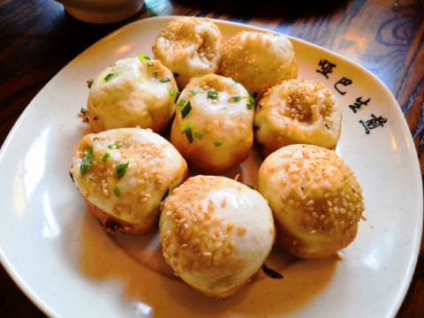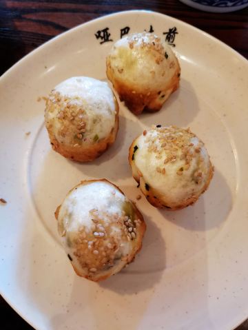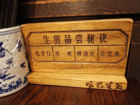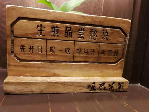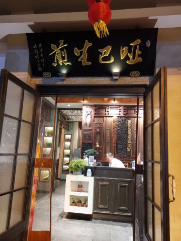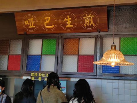 YaBa ShengJian好像有好几家店,我们在平江路逛街,朋友想吃生煎.说附近有一家哑巴生煎,很棒.可以去尝一下.于是直奔这里.环境不错,古色古香的老房子两层,一楼是厨房兼大厅,二楼全是桌子! 口味:大虾生煎 焦底非常脆很香,馅料很足,汁水泡满,很新鲜.现场看到是现包的.7个人现场包,太火了,3点左右开始排队.到我们吃完还是排队!青菜馄饨 非常滚烫,差点把嘴唇汤伤!汤汁鲜 美,馄饨皮薄馅满.好吃 而且份量还 蛮实在!