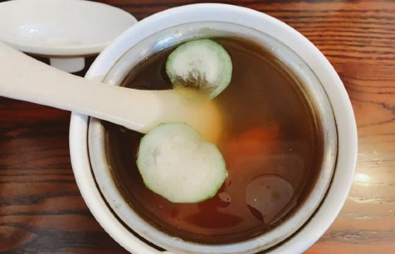 茉莉巡游记来苏州,第一件事情就是品尝一顿正宗的苏式早餐!跟着我去哑巴生煎,尝尝第一口苏州味儿。 🍃哑巴生煎の环境🍃 这家哑巴生煎坐落于某个不起眼的角落,店铺分为上下两层。八点多过去的时候底层已经坐满了,不过楼上环境更好,人少,更舒适。 楼道间的装饰物较为别致,装修风格带有点复古的感觉,挺好的。 🎀哑巴生煎の服务🎀 点完单需要自取,生煎还蛮快的,两三分钟就取到了,其他菜品等的时间长一些,差不多等了15分钟。没办法,人气太旺了。 |哑巴生煎^ 招牌必点,餐桌上均有生煎品尝秘诀。生煎个个皮薄馅大,轻轻咬上一口,慢慢吸吮汤汁,再品尝大块肉馅,圆满了。 |茉莉头汤^ 最初不知茉莉头汤味何物,品尝了之后才知道是各种蔬菜和虾皮煮成的汤,口味清淡不乏鲜味,和生煎最搭了。