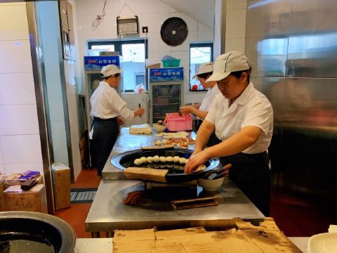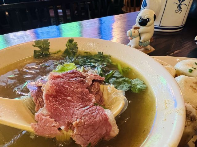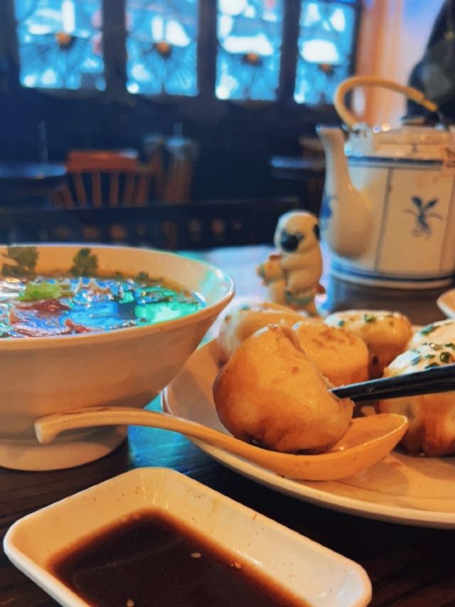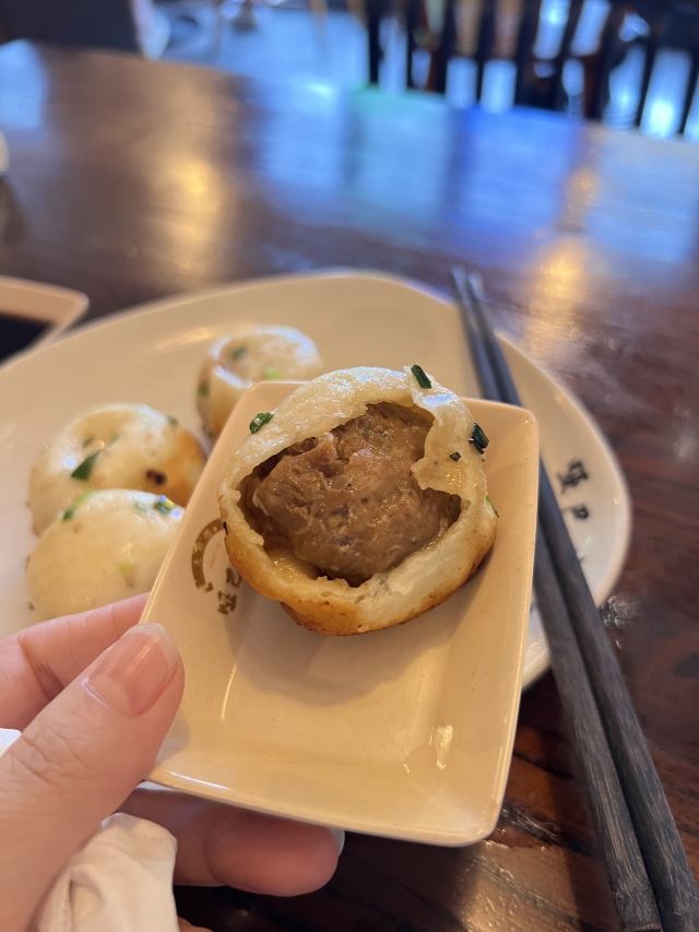哑巴生煎是苏州好吃的生煎之一,已有60多年历史,创始人是一位哑巴,因此得名。临顿路店是最火爆的一家,很多人往往一口气买很多生煎带走,所以永远大排长队,除了生煎,这里也售卖馄饨、面条等作为补充。哑巴生煎外皮脆脆的,咬开一小口,鲜美的汤汁流入口中,再吃肉馅,用料新鲜,口味偏甜,一般一客生煎吃下肚就饱了,可以搭配牛肉粉丝汤一起吃,如果人多,可以再试试荠菜馄饨,同样味道鲜美。