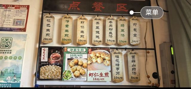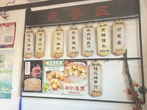 净素生煎,豆腐花,肉粽子,泡泡小馄饨,雪菜肉丝面,焖肉面,荠菜馄饨,茉莉头汤,牛肉粉丝汤,虾仁生煎,鲜肉生煎