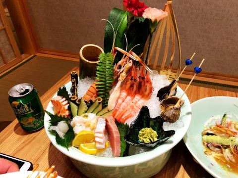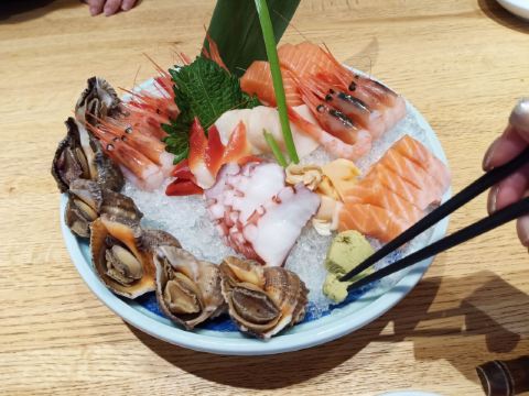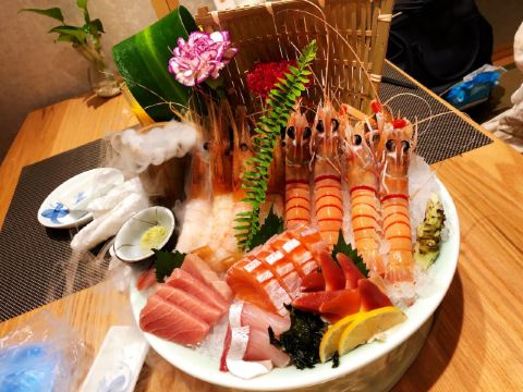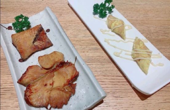 刺身,炸黍米鳕鱼球,烤大虾,刺身拼盘,芝士虾球,三文鱼,铁板牛舌,烤鳗鱼,生鱼片刺身拼盘,甜虾,天妇罗,蒜蓉粉丝蒸扇贝,西京烤鳕鱼,吉列炸大虾,杏仁豆腐,加州卷,冰鲜谷饲菲力牛排配澳带,火爆辣鸡香蒜披萨,干剪鳕鱼,黑蒜烤生蚝,烤鳕鱼,志士虾球,三文鱼铁板牛肉,鳗鱼卷,味增汤,银鳕鱼,色拉,酒蒸文蛤,土豆泥,牛舌,羊排,酱汁田螺