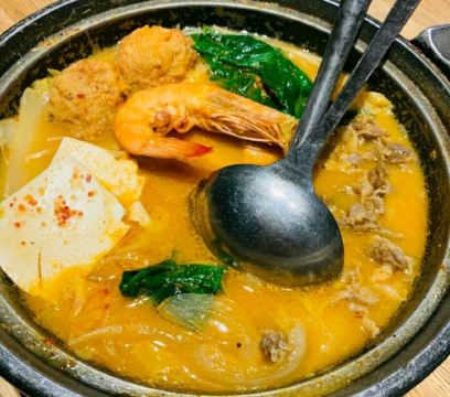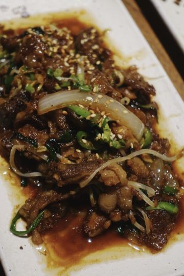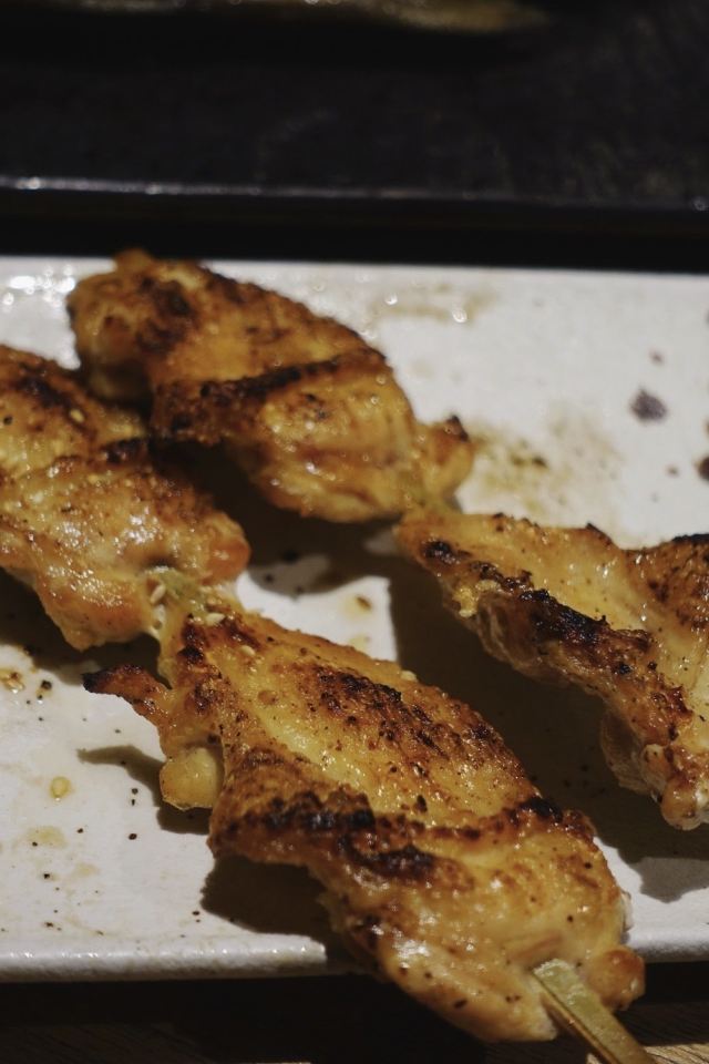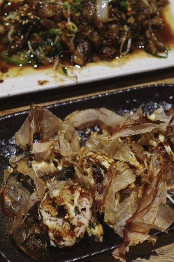 发现这家沿街的日式铁板烧,这里晚上九点半后摇身一变成为深夜小酒馆,指定清酒彻夜半价,气氛好不热闹。 深海墨鱼肠、去骨手羽、酥炸鸡软骨、大阪烧鸡肉丸子、炒牛筋、午仔鱼,一盘盘烤物端上桌,香喷喷的味道让人食欲大开。 有了烤串怎能少了酒作配呢,酸甜的柚子酒和清爽的冰沙生啤都非常不错,下次要再试试梅酒。