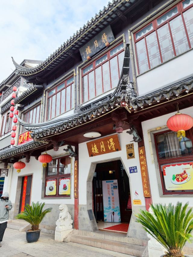 得月楼是苏州有名的百年老店之一,电影《小小得月楼》等曾在此取景。餐馆主营苏帮菜,招牌菜松鼠桂鱼色香味俱全,外脆里嫩,酸中带甜,每道菜都是正宗的当地口味。