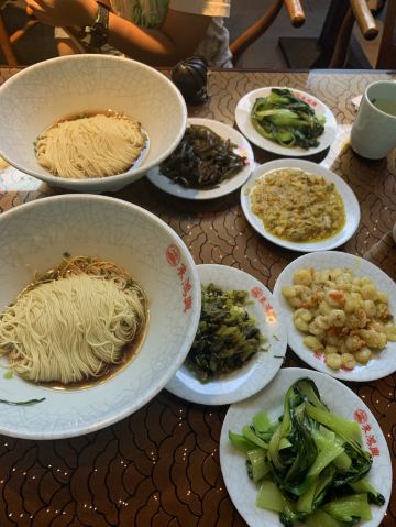 焖肉腰花面,爆鱼面,爆鳝面,焖蹄面,素交面,香菇面,红汤面,扁尖肉丝面,鲜肉小汤包,小笼包