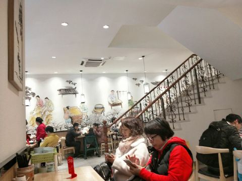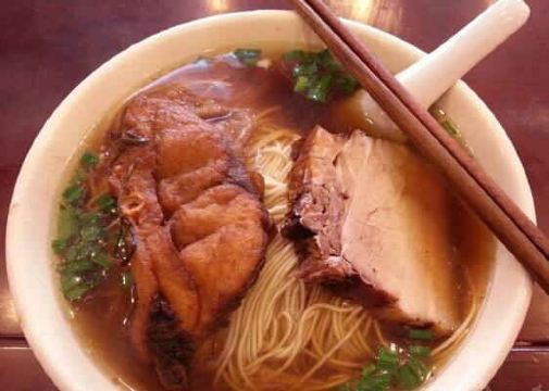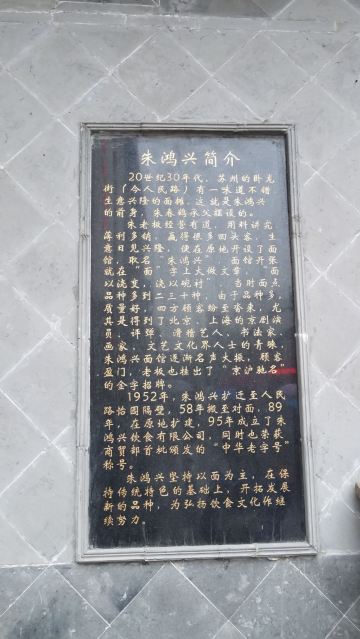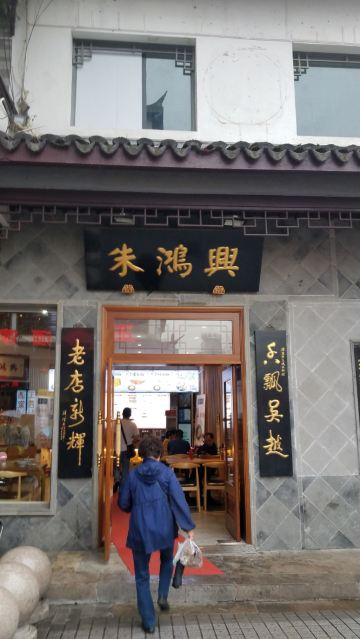 朱鸿兴创立于20世纪30年代,是老字号苏式面馆,陆文夫的小说《美食家》里,主人公非朱鸿兴的面不吃,足见其名气之大。观前街的这家门面贴着类似于拙政园照壁的方砖,馆内摆着深红色的木头桌椅,出售的面种类很多。 焖肉面、爆鱼面、爆鳝面的上座率颇高,面条有嚼劲,汤很鲜美,在这还能吃到盖浇饭和小吃,各色美食的口味和所有地道的苏州菜一样,偏甜。他家的浇头量不是很大,人均价格略微偏贵,不过并不影响到人气的旺盛。