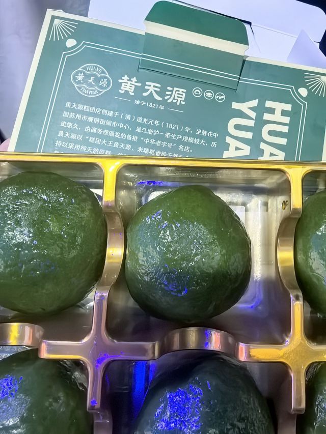 HUANG TIANYUAN来苏州,总是要打卡热门糕点店的~ 4月来苏州,怎么能不买当季糕点|青团^~ 口味: |青团^一盒6个,包装不错~ 一口下去,口感还可以,皮很软糯,里面豆沙无功无过,没啥惊喜~ 环境: 店内生意不错的,总有游客光顾~