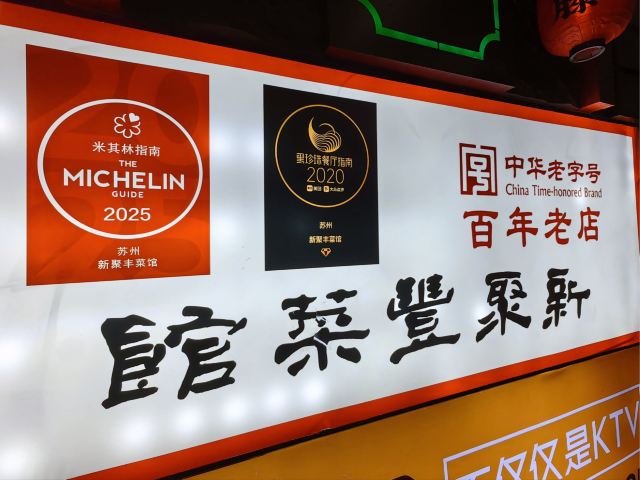Xin Ju Feng Cai Guan今天打卡一家位于观前街太监弄的老牌食府 新聚丰菜馆 上过黑珍珠 登过米其林 双榜加持 总是要来尝一尝的 店铺位于二楼 并不是传统意义上的旺铺 在点评榜单已经屹立了21个年头 应该算是大众点评最老一批店铺了吧 新中式格局 但看起来又有点旧旧的 整个感觉就很国风 嗯 那种早年老国企饭店的感觉 收营穿个便服走来逛去 更加深了我的这般印象 讲真 这样的餐厅能够双榜提名 除了招牌 大厨肯定是功不可没的 所以越发期待今天的菜品 餐厅主要提供传统江苏菜 并按季供应时令菜式 招牌菜糟溜塘鱼片使用新鲜的塘鳢鱼柳 镬气十足 带有浓郁酒香 鱼肉嫩滑具弹性 清炒蟹粉精选当天鲜拆的大闸蟹 现点现炒 鲜亮的颜色令人食指大动 入口啖啖鲜味 Tips 这家餐厅的营业时间很短 晚上8点半就结束了