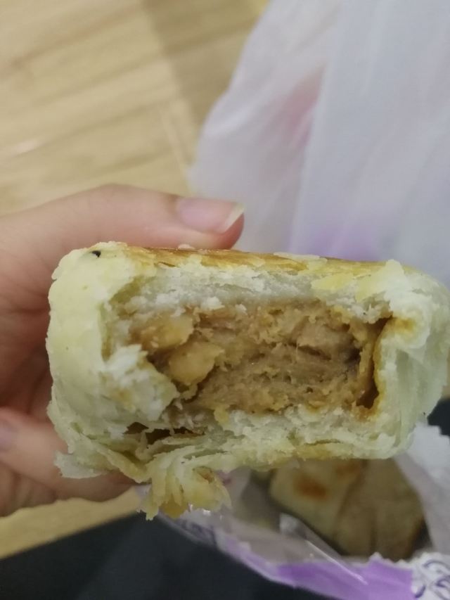 买了两个,鲜肉和榨菜鲜肉,都好吃,热腾腾的,鲜肉的还有汁水!是今天唯一没踩雷的食物。。。