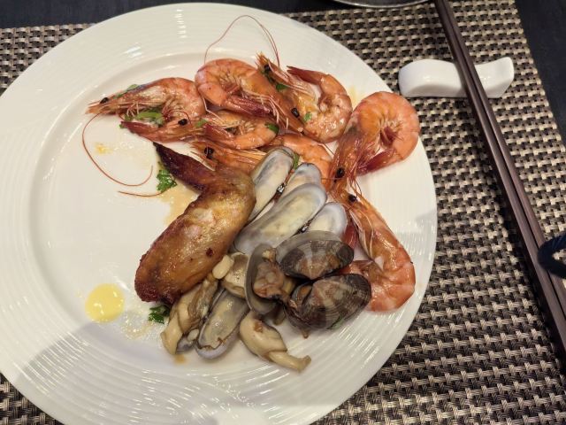 入住期间在酒店享用了自助早餐和晚餐。由于是工作日入住,早上用餐的客人不多。有一块区域提供苏氏面条,特别推荐爆鱼的浇头,听厨师说是苏州特色,味道不错,推荐尝试。晚餐是双人套餐 (三菜一汤),蔬菜和饭可以无限量加,鱼和虾的味道不错,清淡的口味很适合晚上食用。