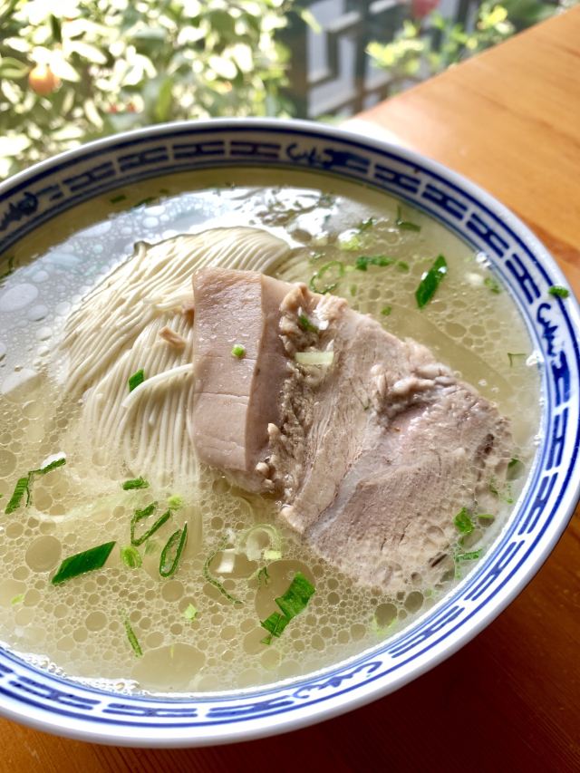 知.识分子眼前这碗刚端上来的面,碗边飘着些碧绿生青的葱花和白白胖胖的酒酿米粒,线香粗细的面条沉浸在清澈的面汤里,面条上面卧躺着一块巴掌心大小的略带粉色的焖肉。无论是鼻子里闻到的,还是舌头上尝到的,都是一股淡淡的沁人心脾的酒香。喝一口面汤,用肉骨、黄鳝骨、虾脑、螺蛳肉等食材老火慢煮得来的鲜味里,带上了酒酿的丝丝甘甜味。在各种秘方香料的锅里焖煮四五个小时出来的那块白肉自然是酥软入味,那肥肉和肉皮用舌头一呡,便化成满口的汁水了。面条也算是上乘的,只是还不合我面条要筋道的期待,或许是本地讲着满口酥软苏州话的食客的口味就是这样的吧。 我们去的这家“同得兴“坐落在苏州的十全街,横跨在一条小河浜上。在十全街附近徜徉了许久。无论前街上的服饰店还是后巷里的玉石加工坊,店主们用心布置的店堂看上去是那么的赏心悦目,没有什么高调奢华的东西,只是一份份的精致和素雅。