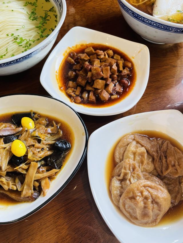素油香菇,糖醋面筋,蛋黄大排,苏式爆鱼,酱爆猪肝,雪菜毛豆,焖肉面,红汤面,白汤面,枫镇大肉面,桂花鸡头米,白汤大肉面,枫镇大面