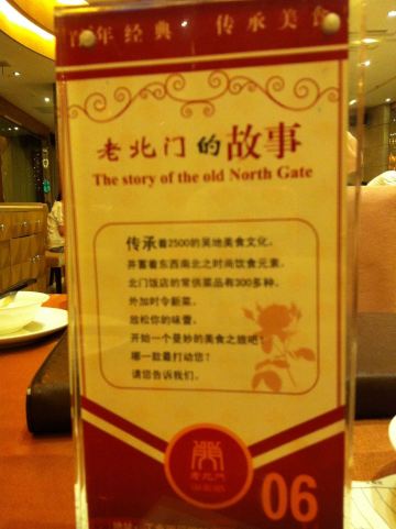 老北门饭店是苏州的一家老字号餐馆,有独立的一整座楼,共三层,营业面积很大。餐馆靠近金鸡湖畔的月光码头,坐在餐馆就可以欣赏美丽的风景。餐馆大堂的座位很多,基本上不用等座位,但包间必须提前预定,尽管包间较多,仍不容易保证。使用包间没有最低消费的门槛,自带酒水也没有限制。这里的菜做得很好,苏州特色明显。特色肠肺汤味道很鲜美,干煎小黄鱼服务员会帮忙分配一人一条,口感非常酥嫩,黑椒牛肉粒的肉质很好,胡椒味很重,而松鼠桂鱼则是色香味都很好。这里的服务非常不错,价格不算太贵,是朋友聚会的好地方。