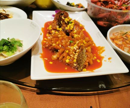 果木烤鸭,松鼠桂鱼,特色肠肺汤,北门肠肺汤,干煎小黄鱼,爆炒牛肉粒,鸡汁水晶萝卜,酱油虾,酸汤肥牛