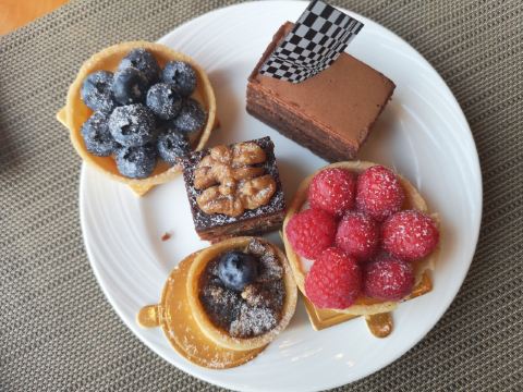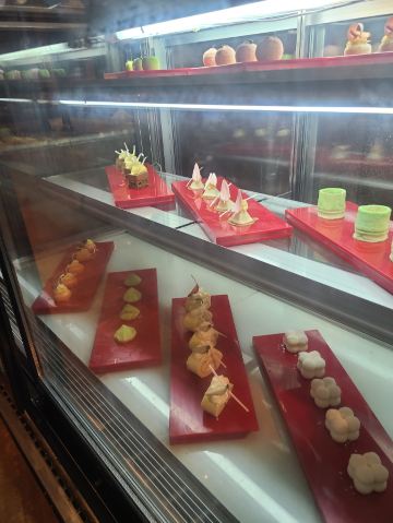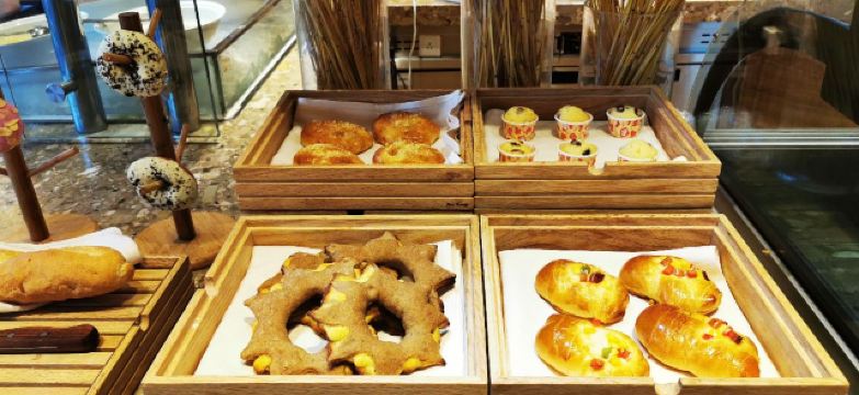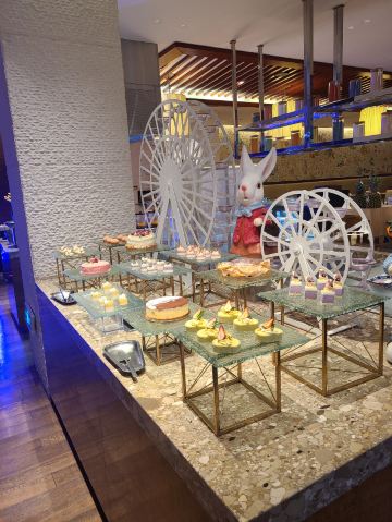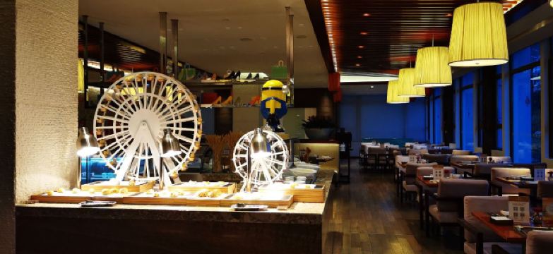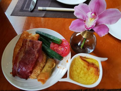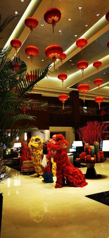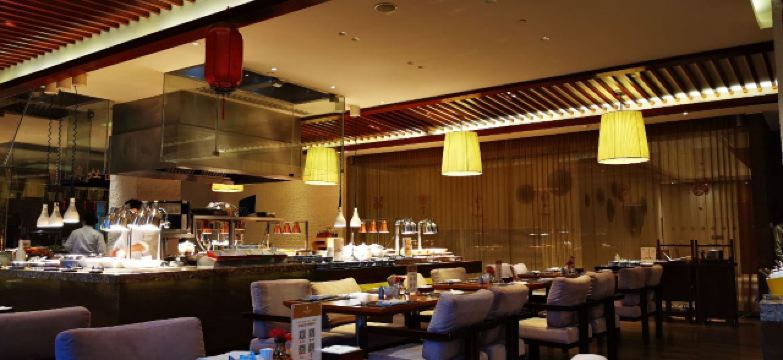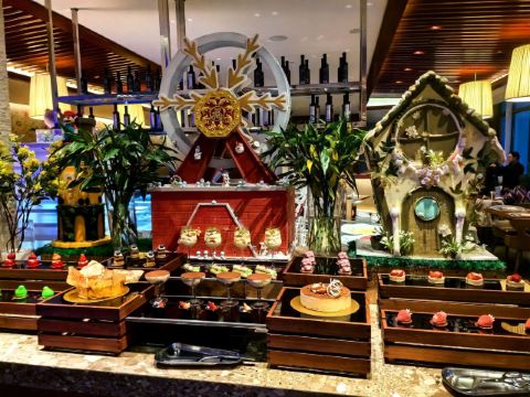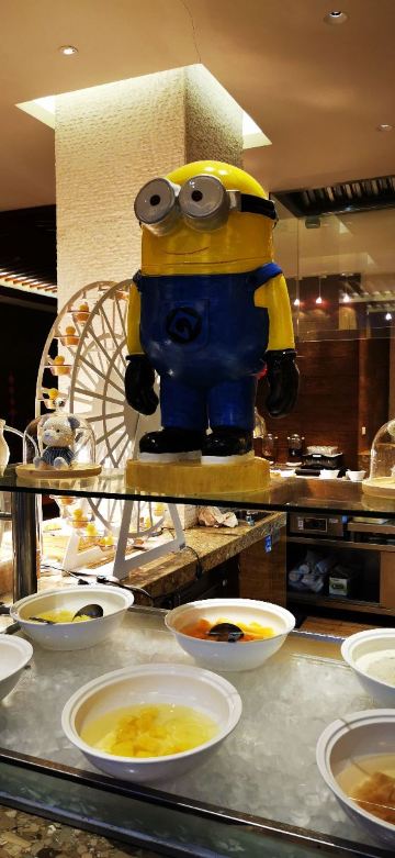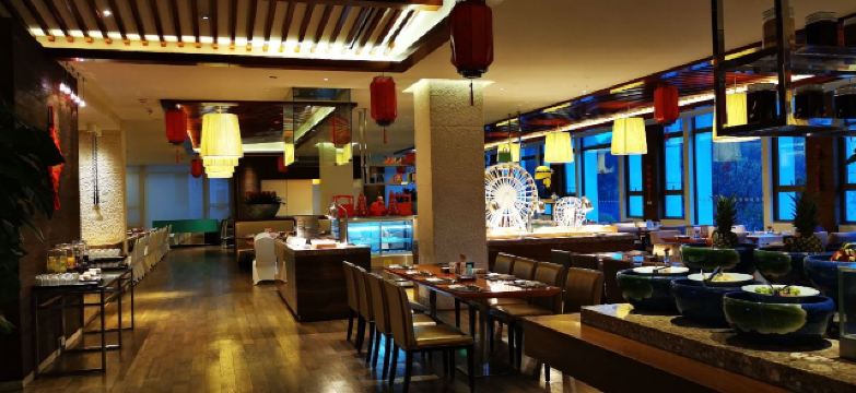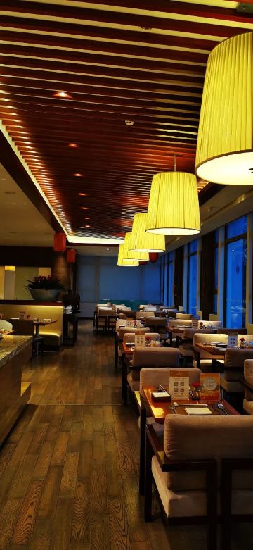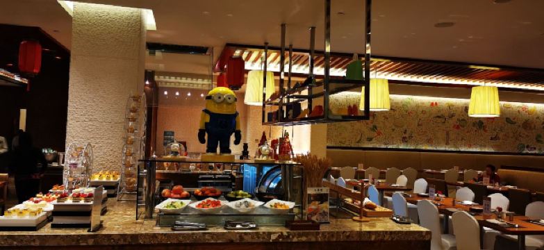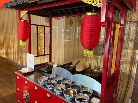 五星酒店的咖啡厅,一般情况下也是吃自助早餐和自助晚餐的地方,所以都会装饰的很大气,空间大,景色好,金鸡湖大酒店的金咖啡厅也是这样。这次从小年夜到初二住了四个晚上,每天早餐就是在这里吃的,六点半就开门了,可能过年人少些,我们七点半去人还不多。进门直接拿房卡在POS机上扫一下自动识别房号,靠窗的位子景观好,但是排列稍挤,进出不便,尝试坐了一次之后就果断换到靠近小馄饨摊位的桌子,不过晚餐不能坐这类位子,油烟大了些,还是靠窗位好。早餐选择品种异常多,中西式、面点、点心品种齐全,吃下来肉包子做的不错,煎饼果子刚出炉也很可口,咖啡最好自己去倒,咖啡机上可选的品类比较齐全。虽说是过年,但服务生配备齐全,没有人手不足的感觉