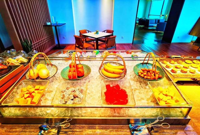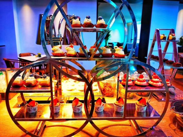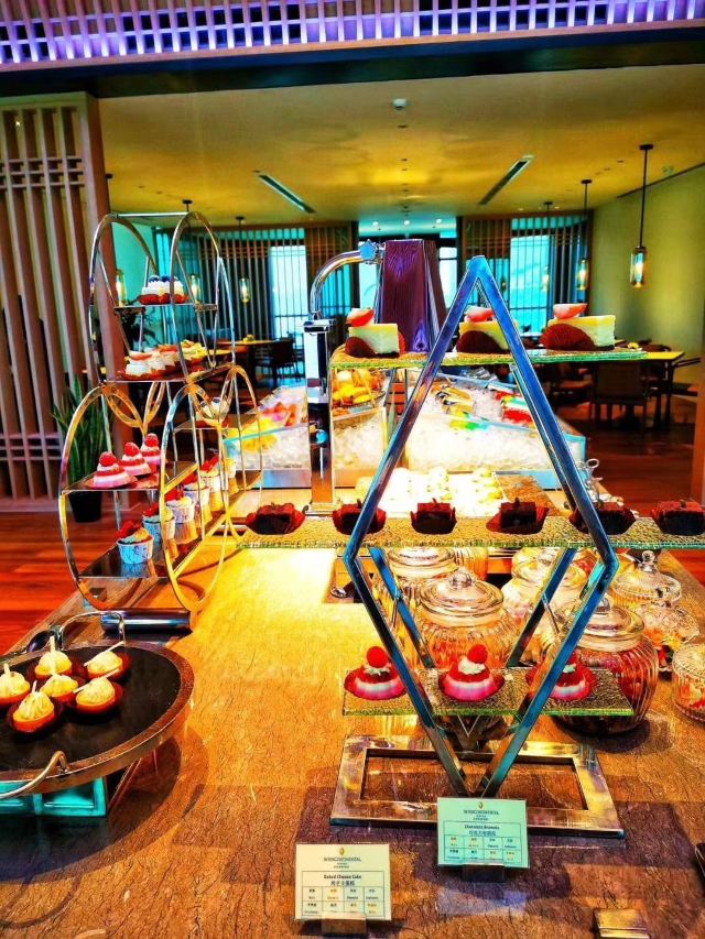 挑高的装修倍显大气,整体就餐氛围舒适,提供西餐及甜品糕点。餐厅所有的茶点都是现做,水果、沙拉、糕点,选择多样,口感丰富,令人回味。