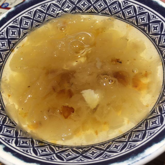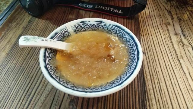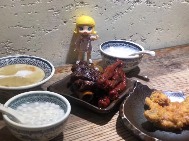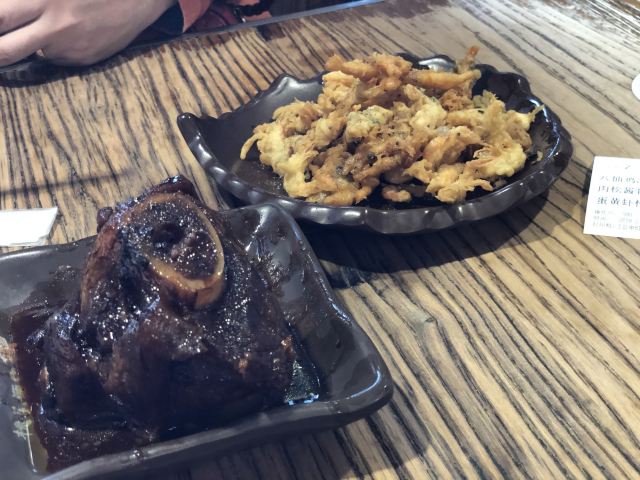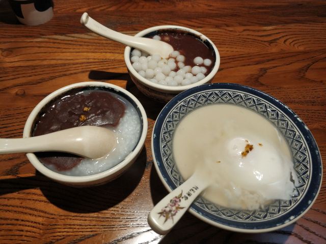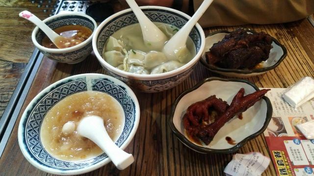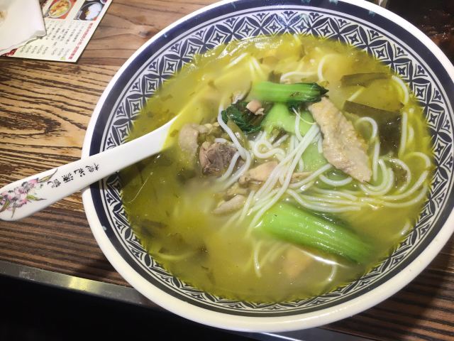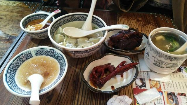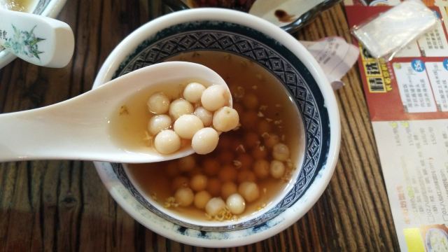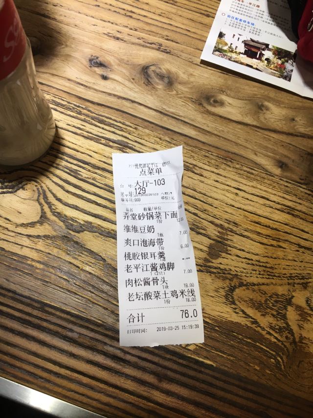 时刻悠然2店铺位于平江路历史街区,门脸不大,但吃饭的人不少,过了饭点依旧几乎满员,环境是仿古的感觉,一进门口点餐,然后在座位等餐即可,负责点餐的女服务员给人感觉不是太好,一副不怕没人来的面孔,点餐的时候不说没有了,重复菜品的时候我们说还有屋里厢菜饭,她才说一句没了,结果我们等餐的时候,就有一大桶新出锅的饭了,上菜的服务员感觉稍微好一些,我们点了两道主食:弄堂砂锅菜下面和老坛酸菜土鸡米线,味道还行,可也算不上什么特色,此外还点了一道鸡脚和酱骨头,说是这里的推荐菜,吃起来也没觉得“惊艳”,海带丝还确实比较爽口,就着肉吃没那么腻,豆奶只能在店里喝,7块钱的价格就有些贵了,唯一觉得还值得推荐的,是桃胶银耳羹,甜甜的、温温的、滑滑的,口感不错,总体的人均价格,就吃饱而言,还可以
